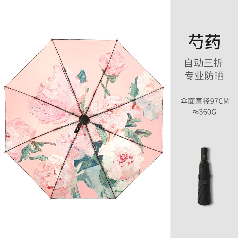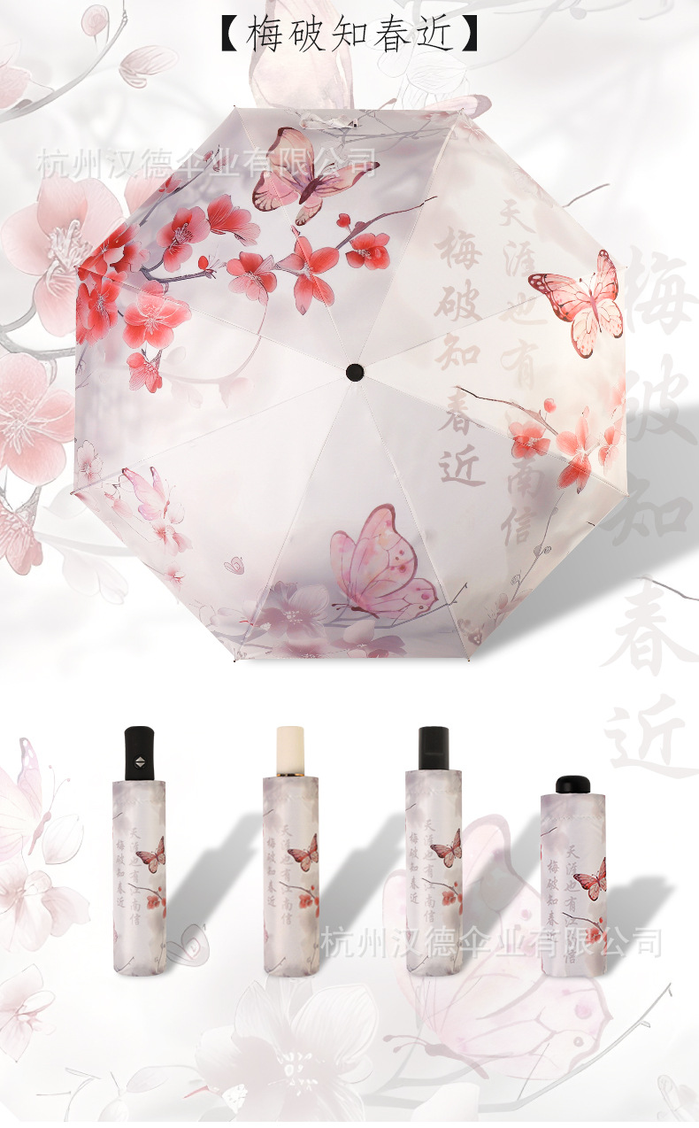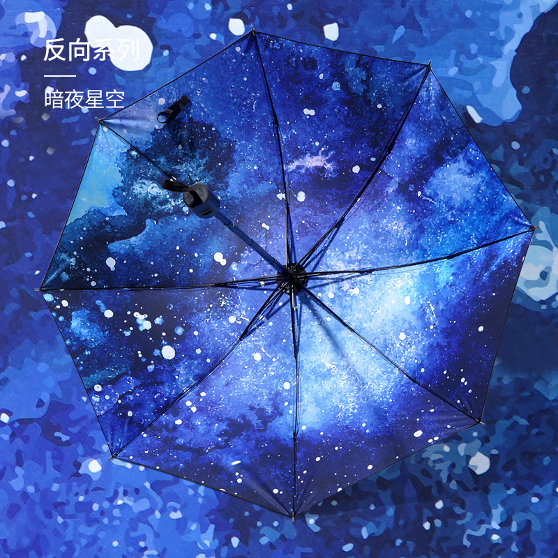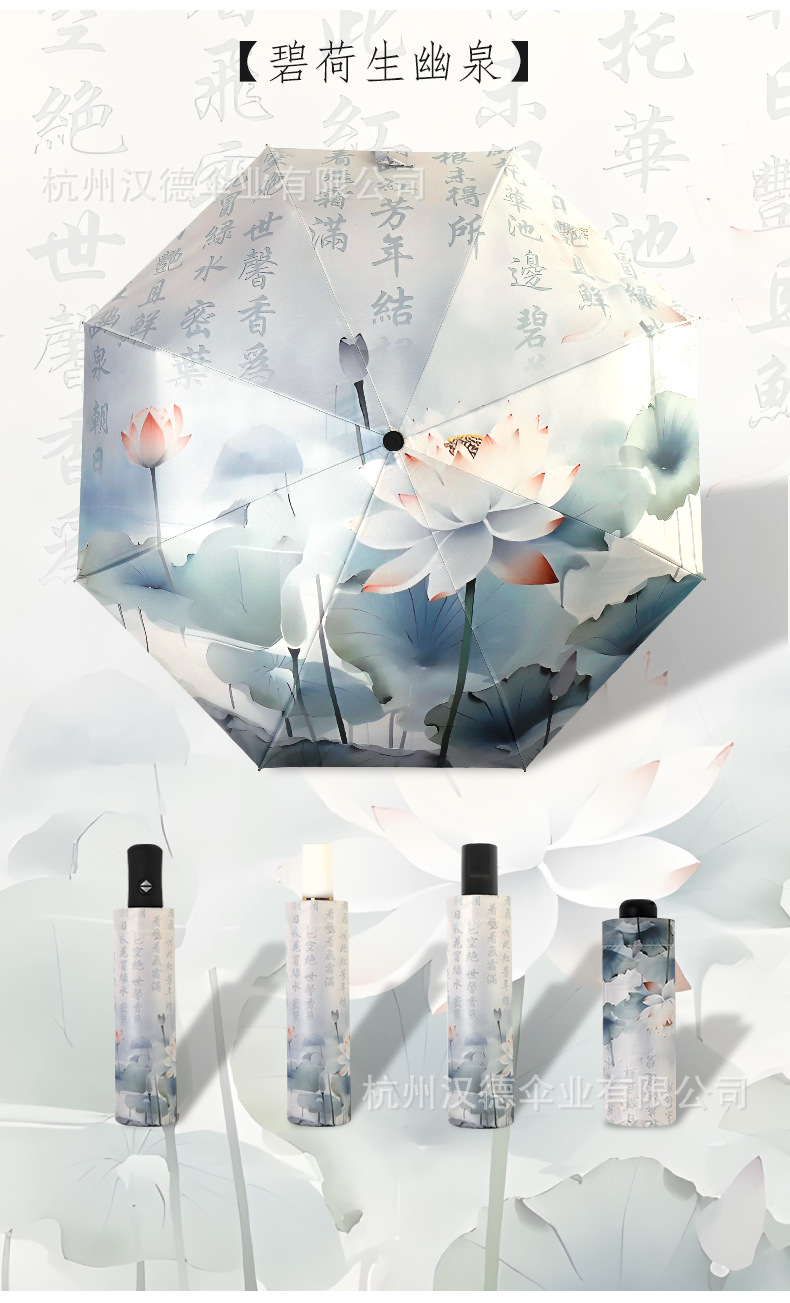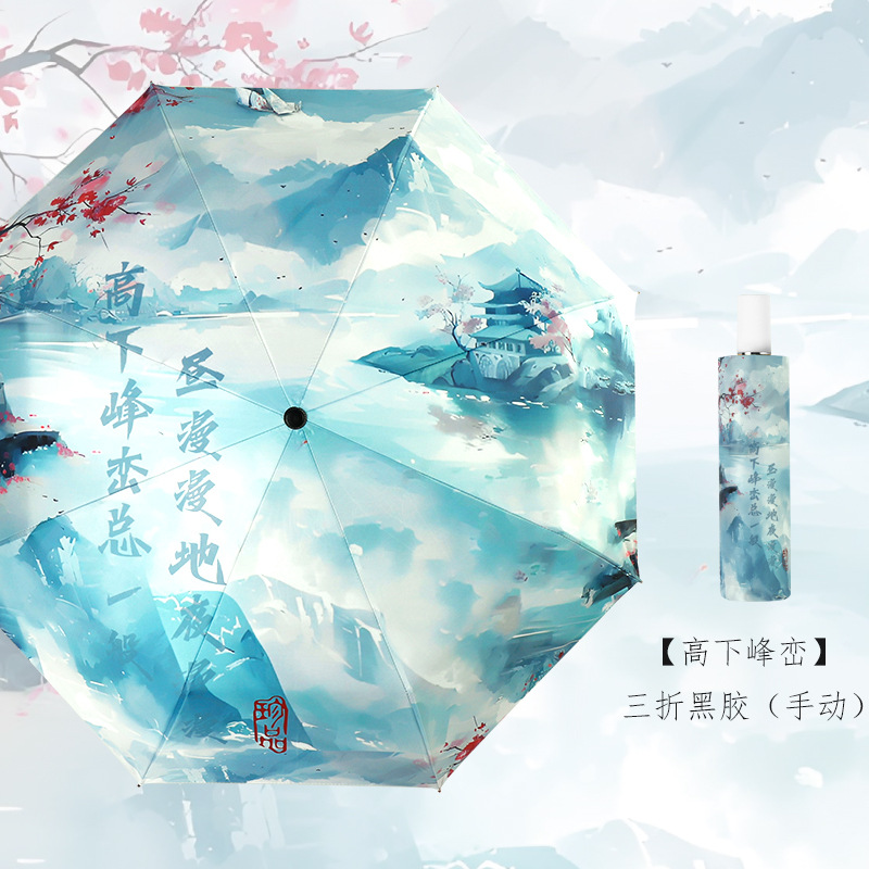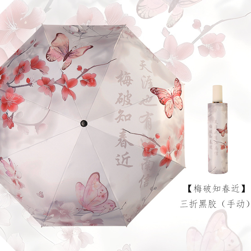 伞的图案在里面,外面是黑色黑胶,防晒涂层,晴雨两用