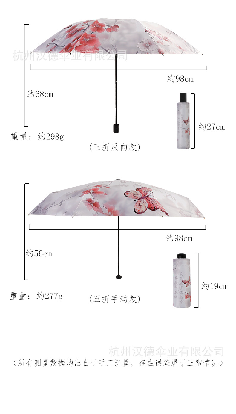 8根伞骨,伞下直径约98厘米,适合1-2人
