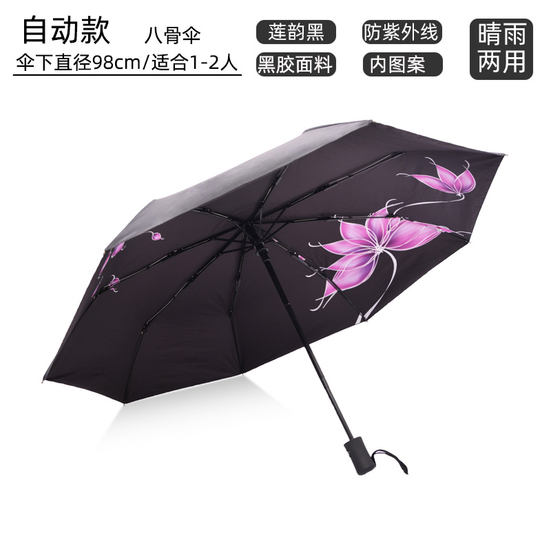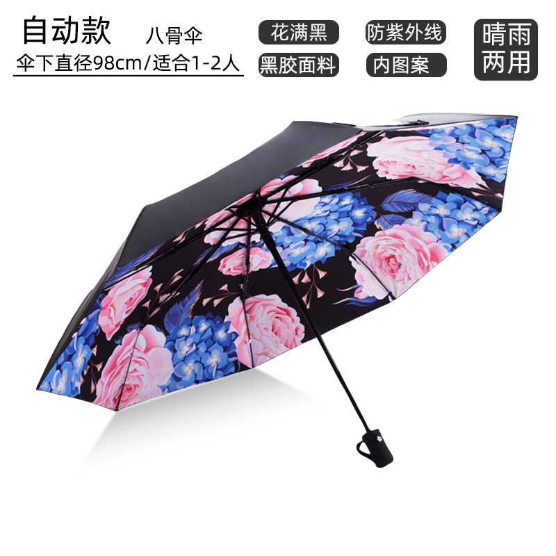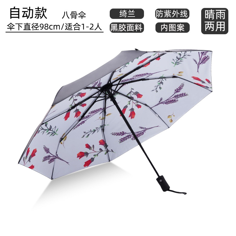 自动伞是自动打开,但是收伞时需要手动收回的,产品都是8根伞骨,折叠收起来,方便携带