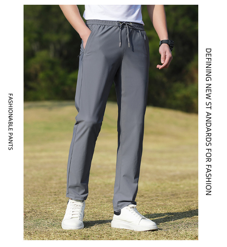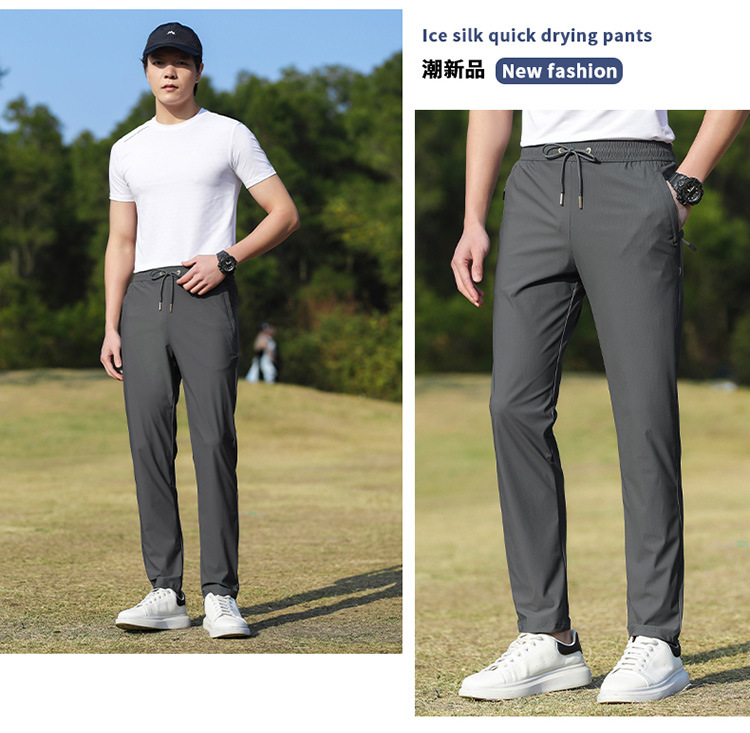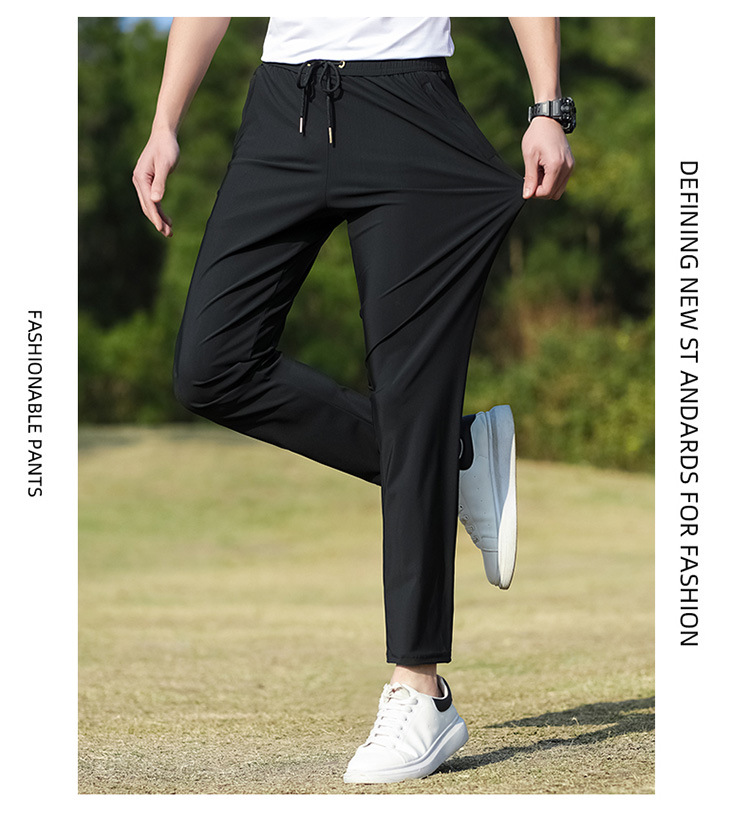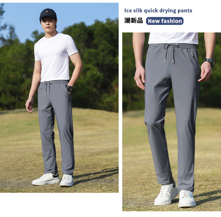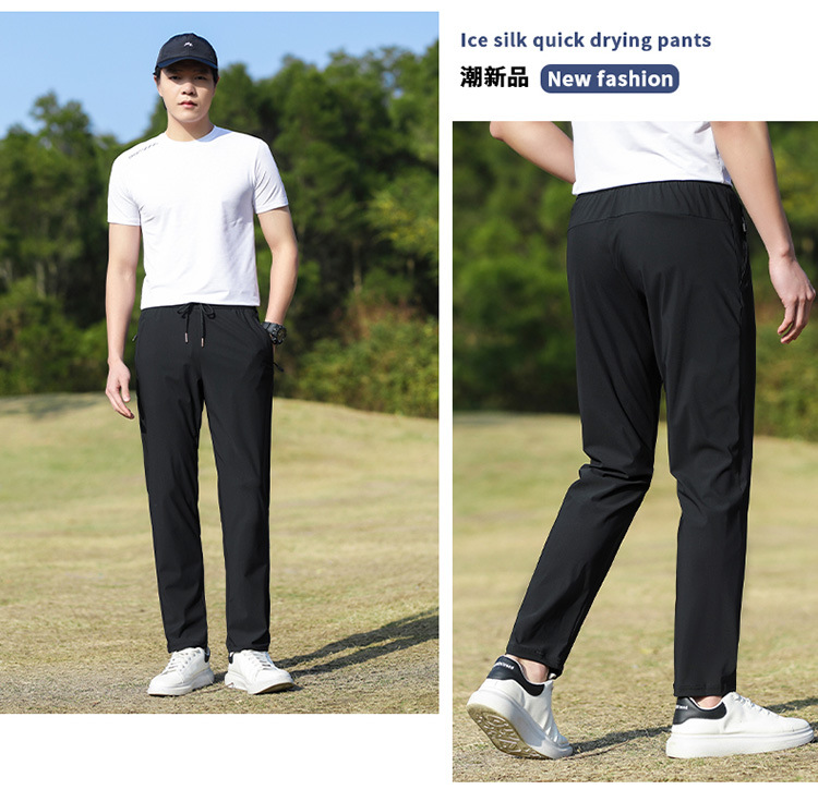 여름 느슨한 넓은 다리 얇은 빠른 건조 아이스 실크 캐주얼 바지 여성의 드레이핑 다용도 스트레치 발목 묶인 스포츠 바지 남성