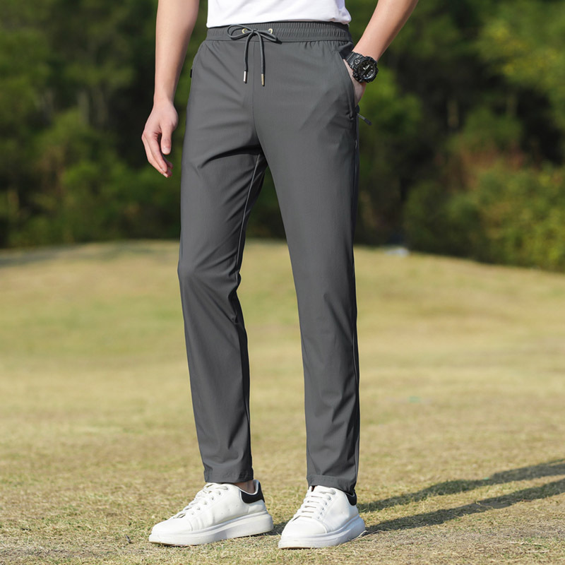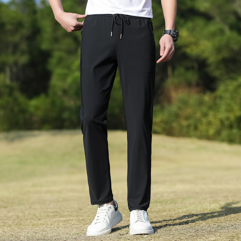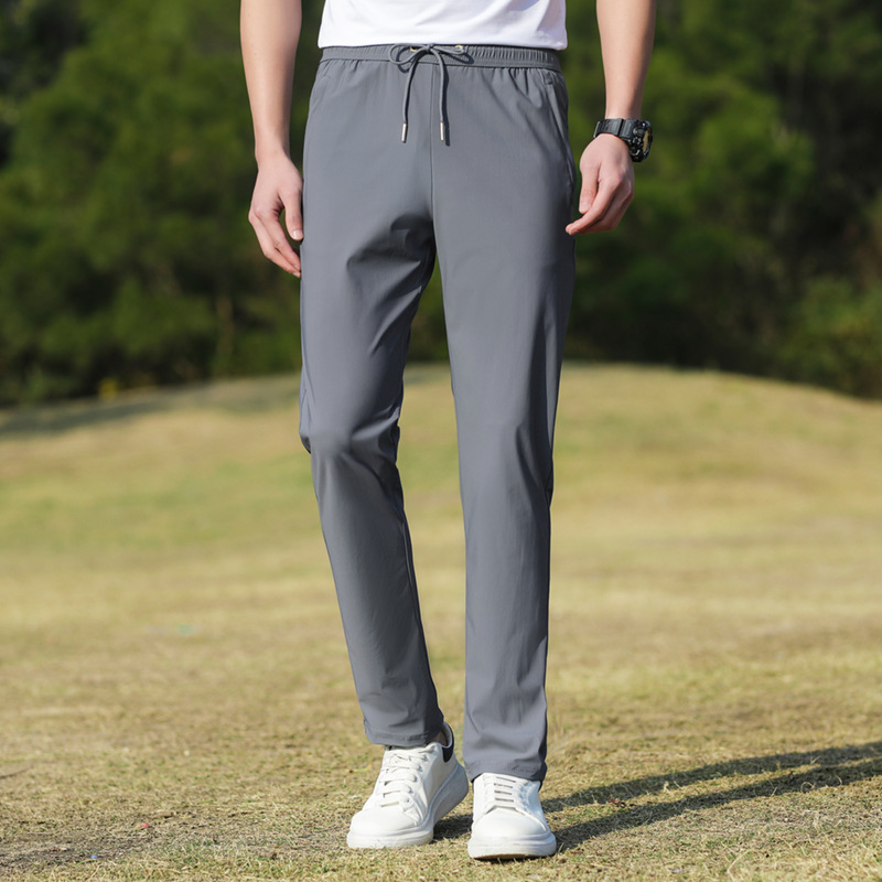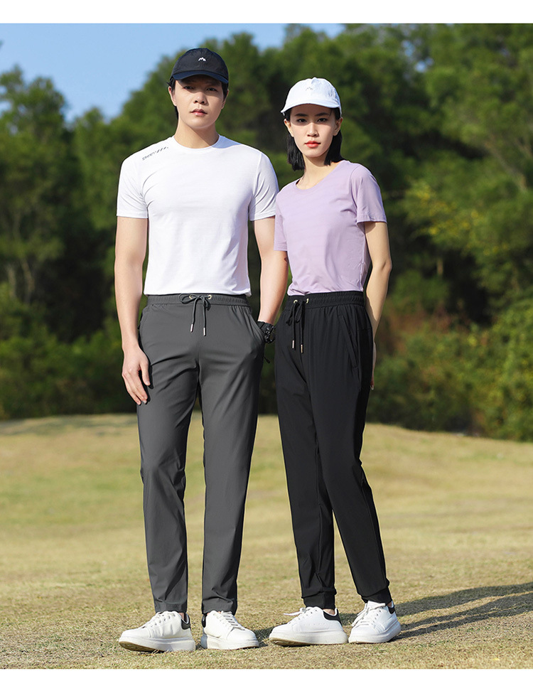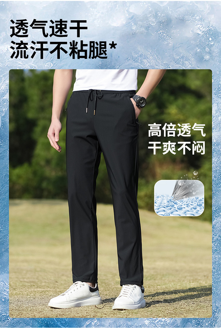 여름 느슨한 넓은 다리 얇은 빠른 건조 아이스 실크 캐주얼 바지 여성의 드레이핑 다용도 스트레치 발목 묶인 스포츠 바지 남성