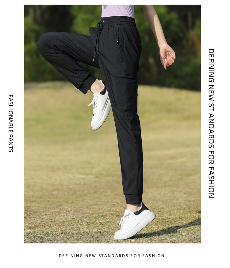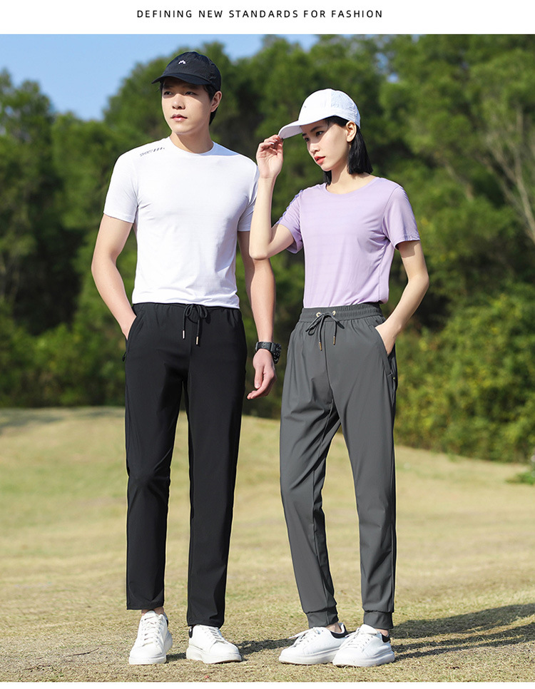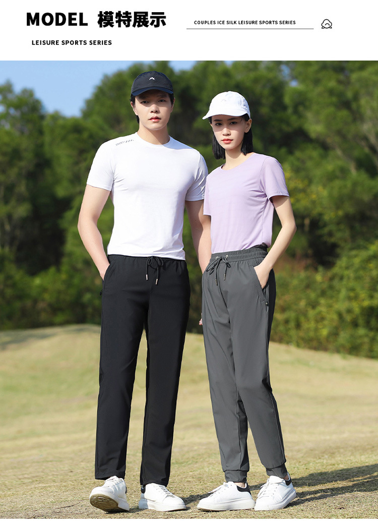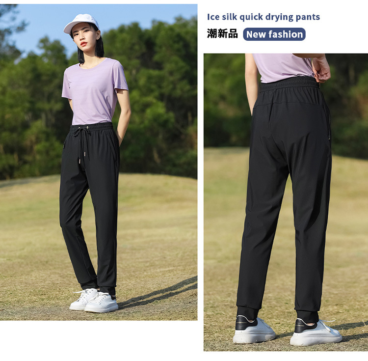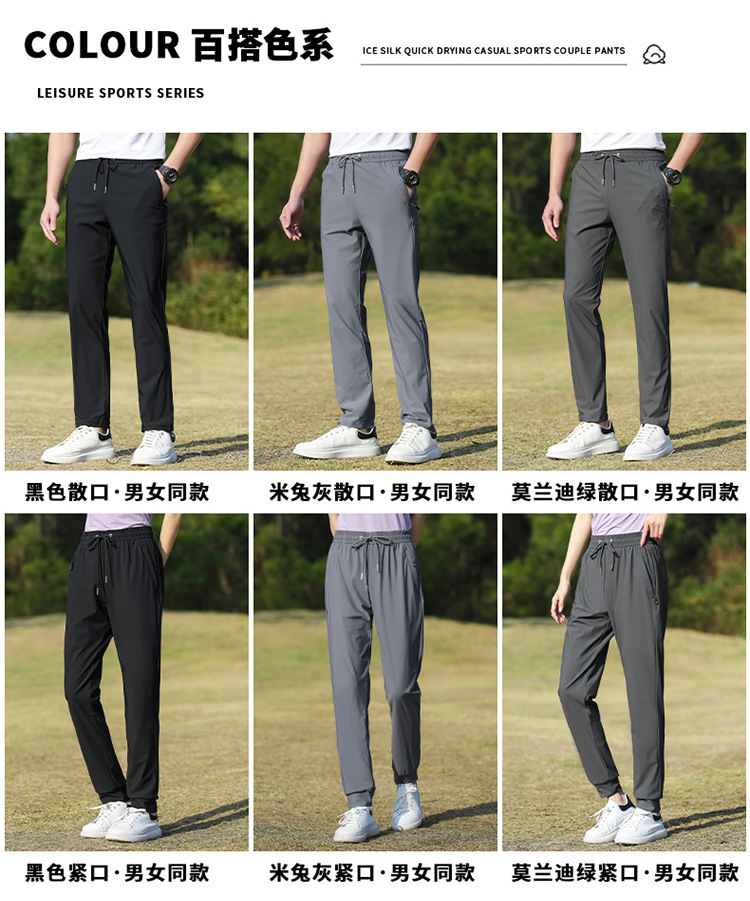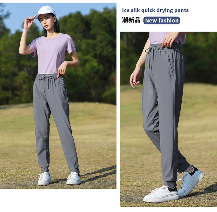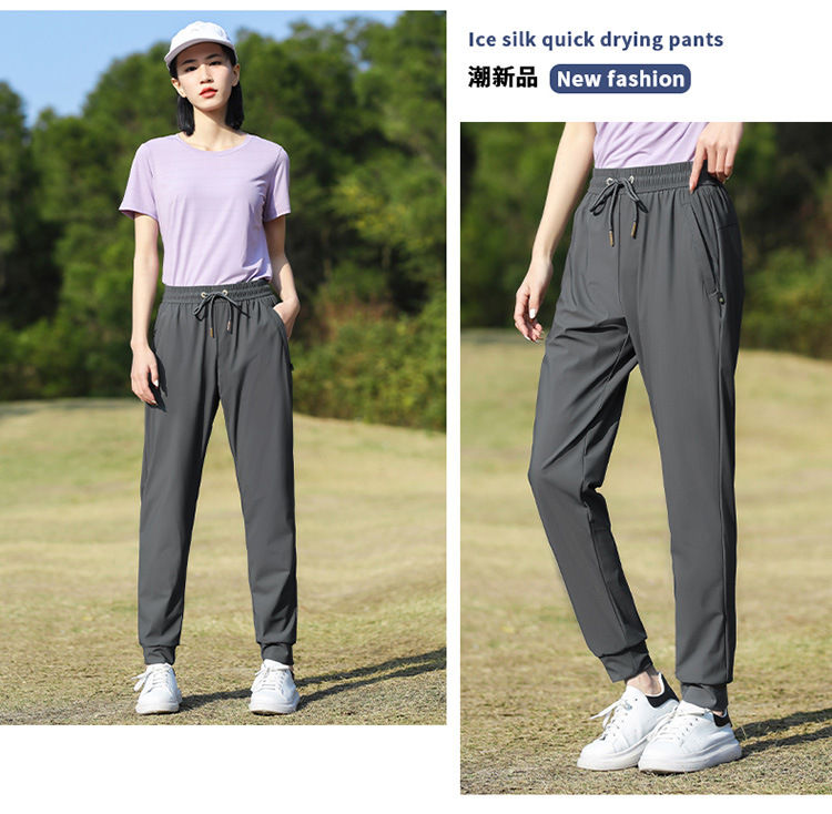 여름 느슨한 넓은 다리 얇은 빠른 건조 아이스 실크 캐주얼 바지 여성의 드레이핑 다용도 스트레치 발목 묶인 스포츠 바지 남성스토어 가기