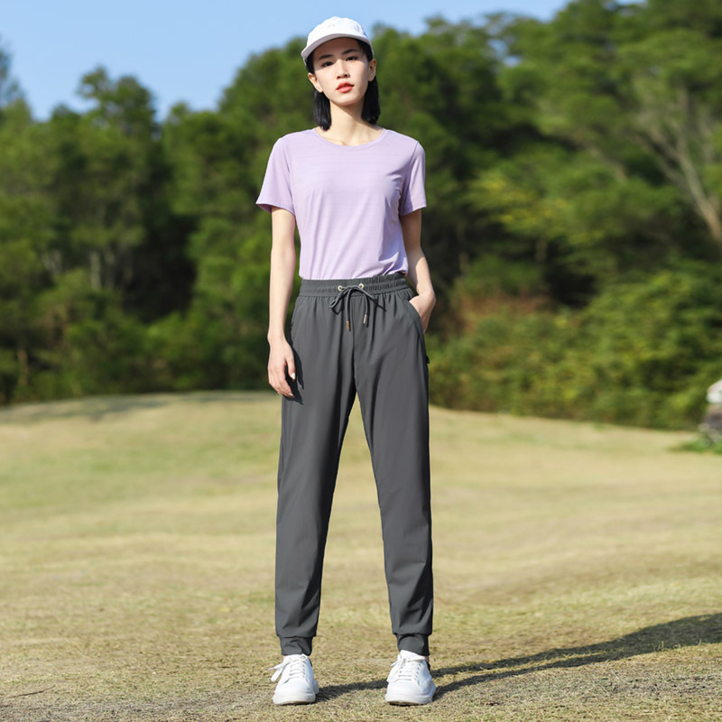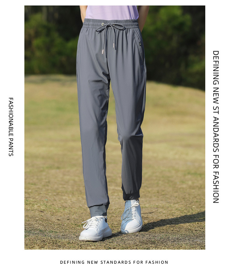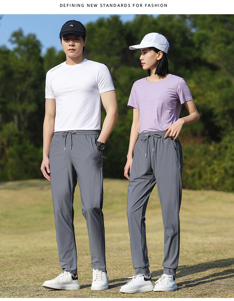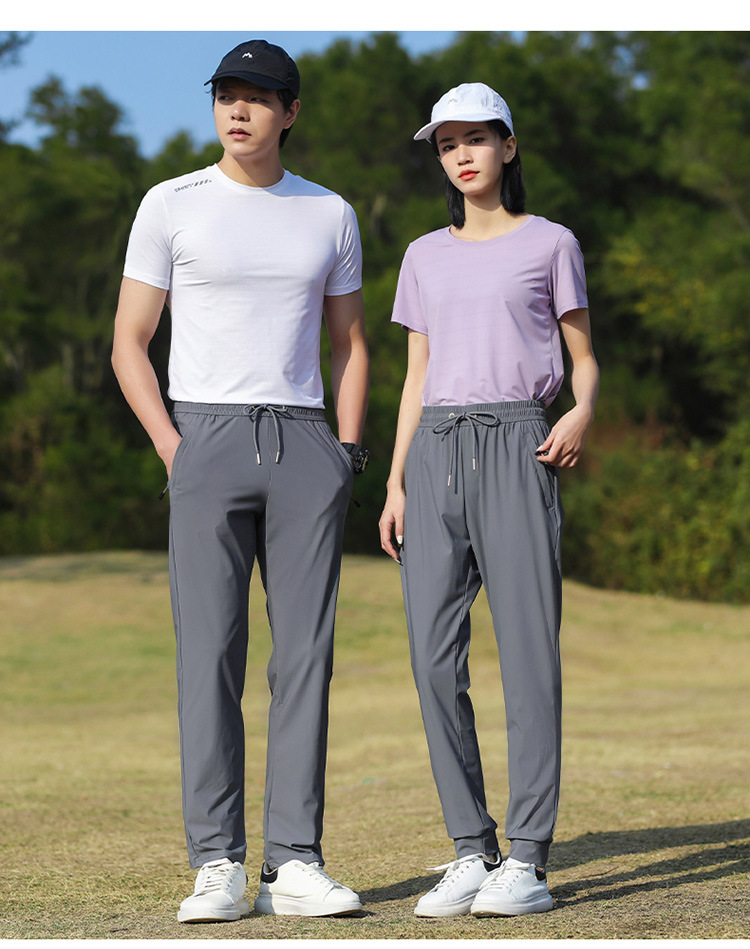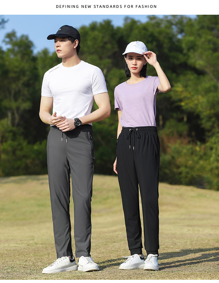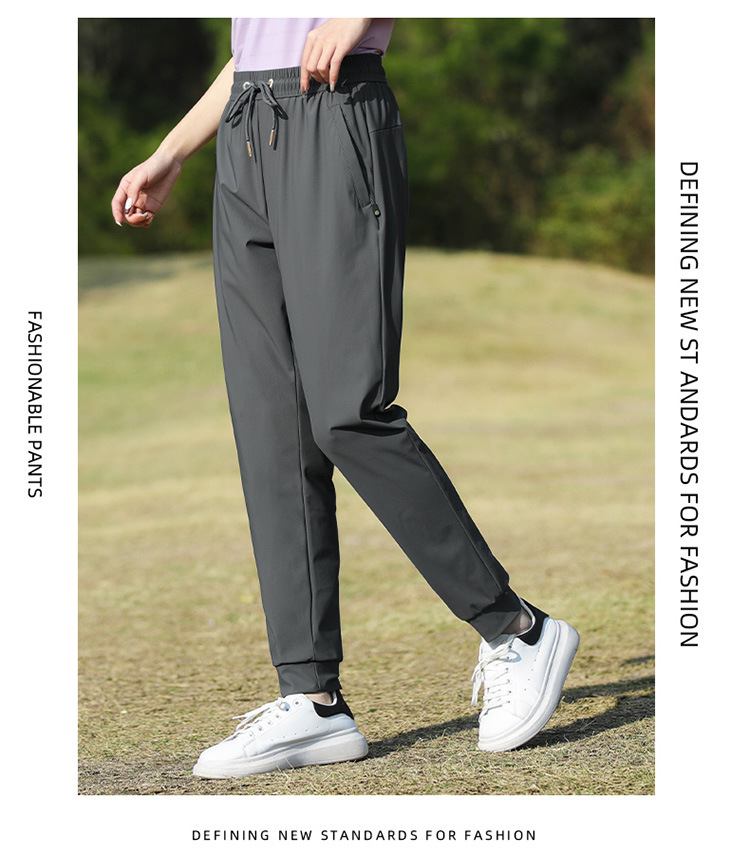 여름 느슨한 넓은 다리 얇은 빠른 건조 아이스 실크 캐주얼 바지 여성의 드레이핑 다용도 스트레치 발목 묶인 스포츠 바지 남성스토어 가기