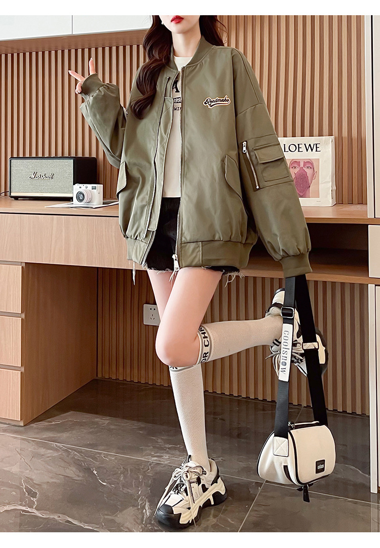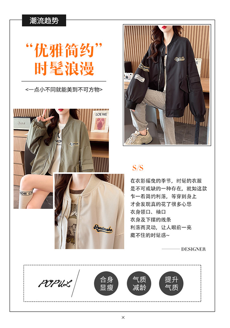 야구 유니폼 짧은 코트 2024 봄과 가을 새로운 느슨한 내마모성 파일럿 재킷 여성의 세련된 탑스토어 가기