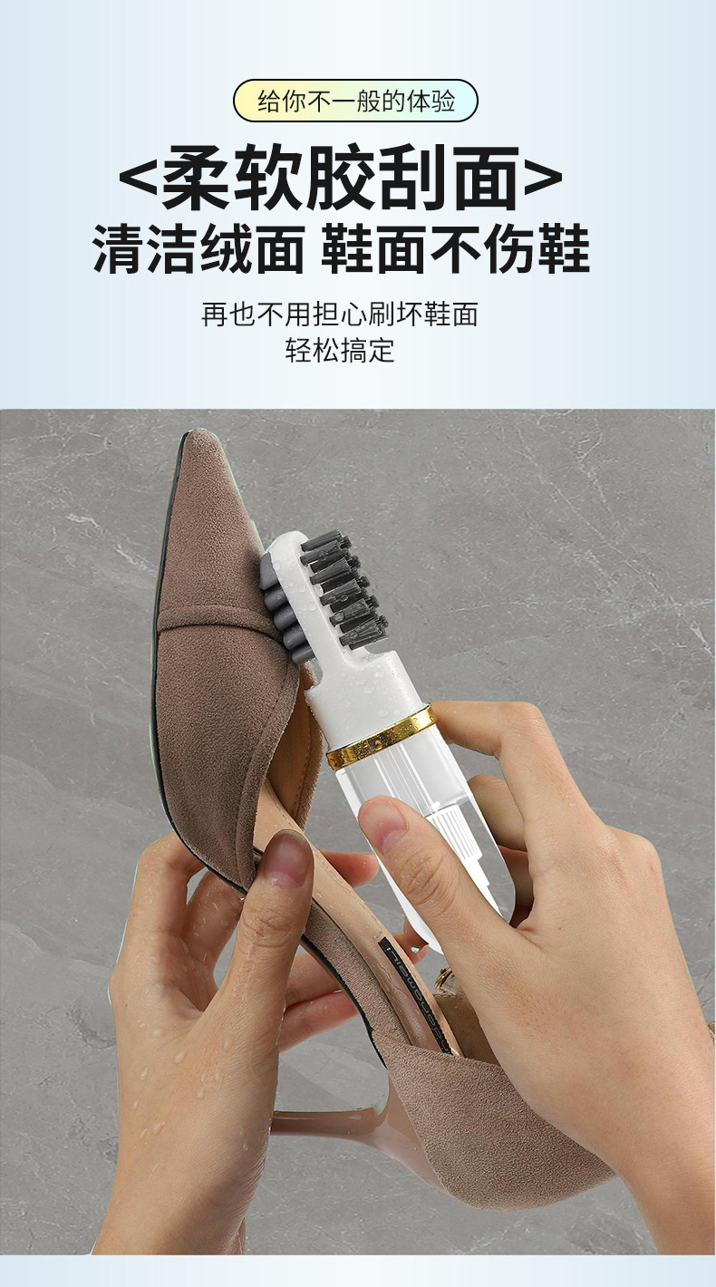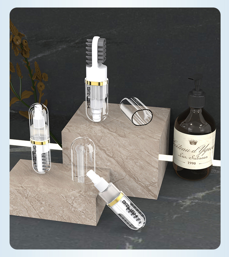 원래 디자인 신발 브러시 부드러운 모피는 신발 다기능 휴대용 청소 브러시 프레스 형 액체 추가 신발 브러시 도구를 해치지 않습니다.