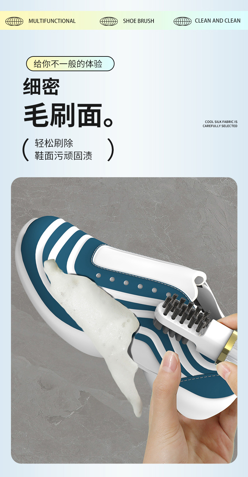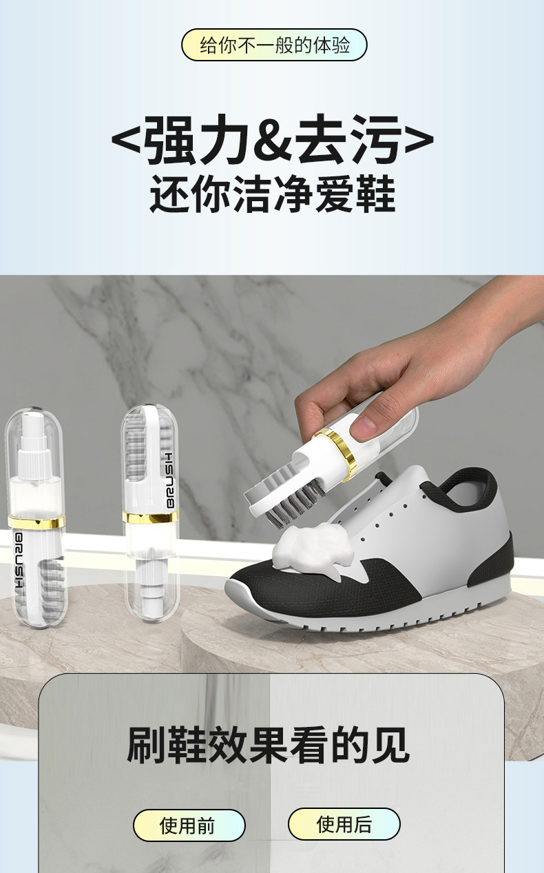 원래 디자인 신발 브러시 부드러운 모피는 신발 다기능 휴대용 청소 브러시 프레스 형 액체 추가 신발 브러시 도구를 해치지 않습니다.스토어 가기