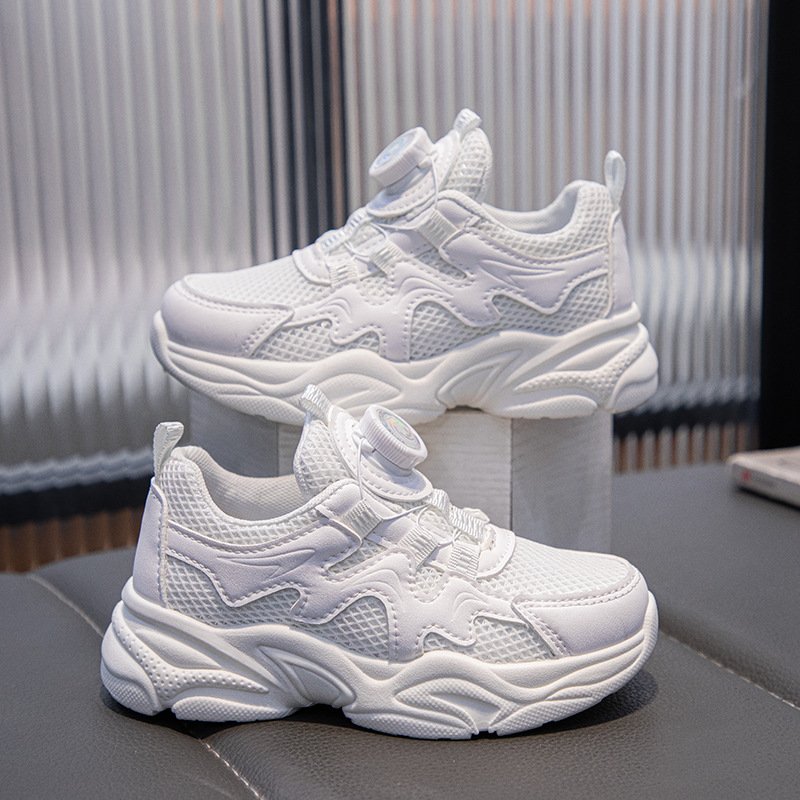 어린이 운동화 2025 봄과 가을 새로운 스타일 회전 버튼 부드러운 밑창 미끄럼 방지 중대형 어린이 캐주얼 학생 흰색 신발