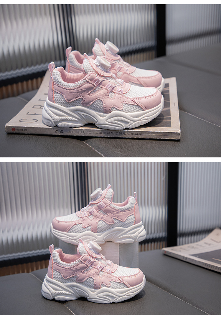 어린이 운동화 2025 봄과 가을 새로운 스타일 회전 버튼 부드러운 밑창 미끄럼 방지 중대형 어린이 캐주얼 학생 흰색 신발스토어 가기