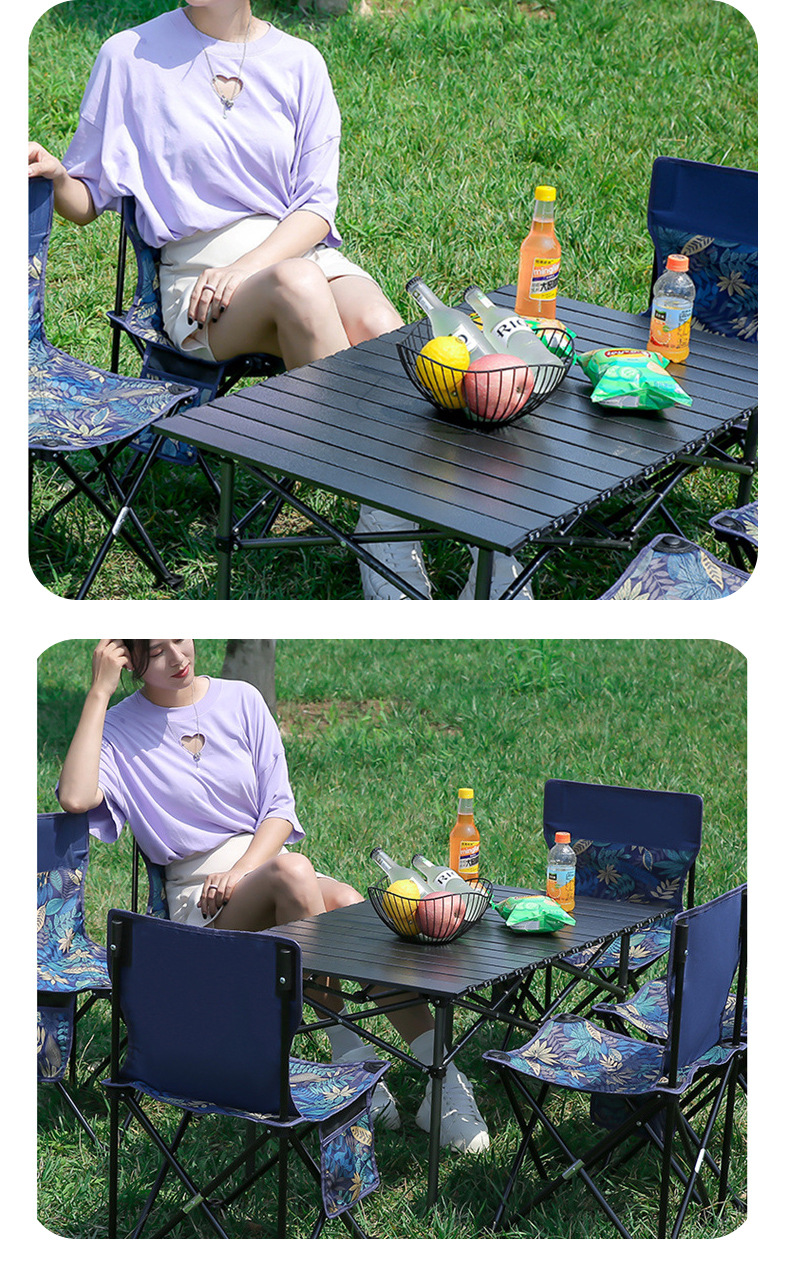 맞춤형 야외 접이식 테이블 탄소 강철 합금 계란 롤 테이블과 의자 캠핑 피크닉 테이블 휴대용 장비 용품 테이블 및 의자