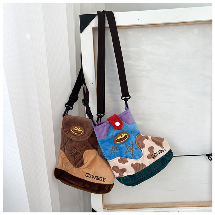 데님 시리즈 가을과 겨울 새로운 복고풍 부츠 크로스 바디 인형 가방 어린이 선물 메신저 가방 봉제 숄더백