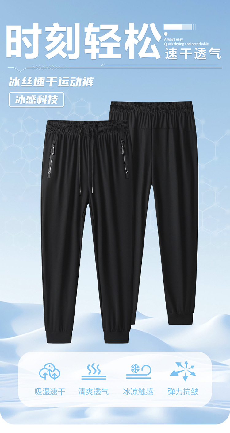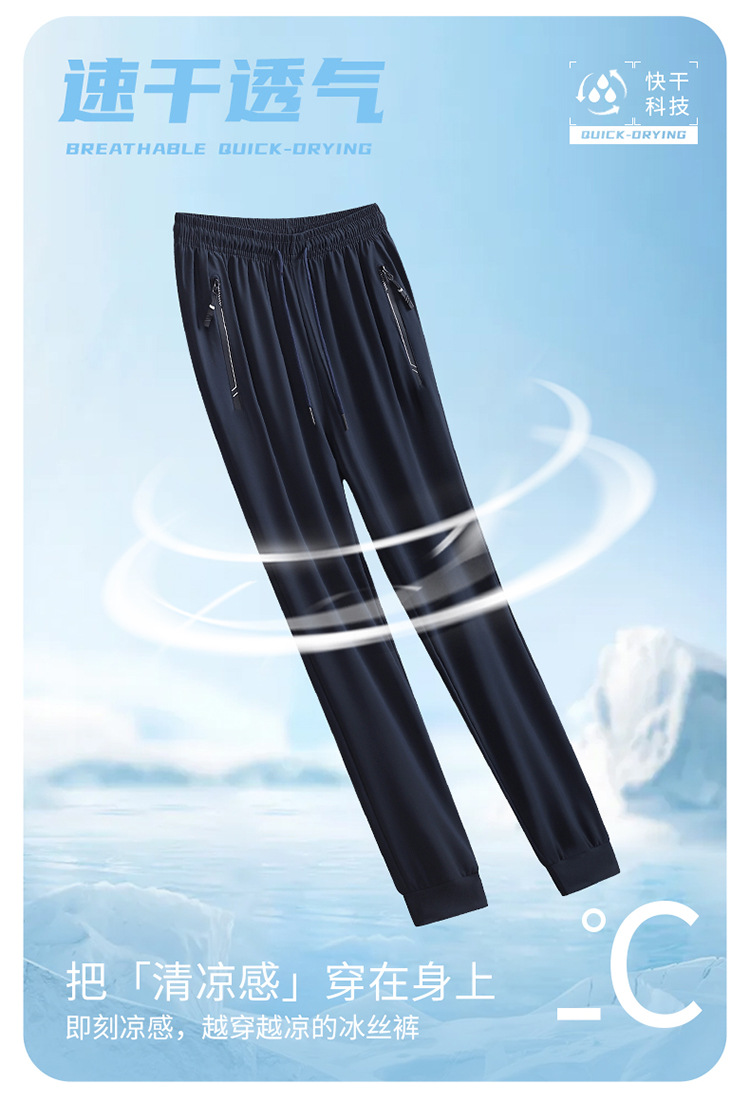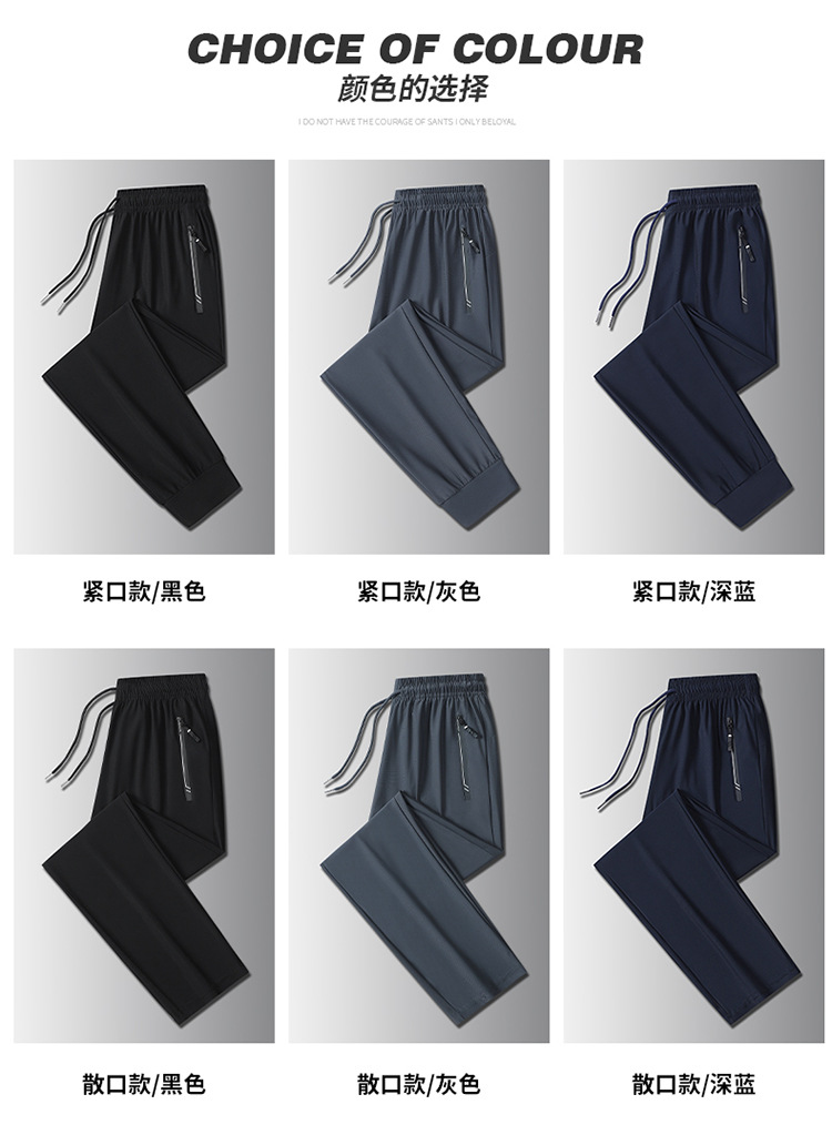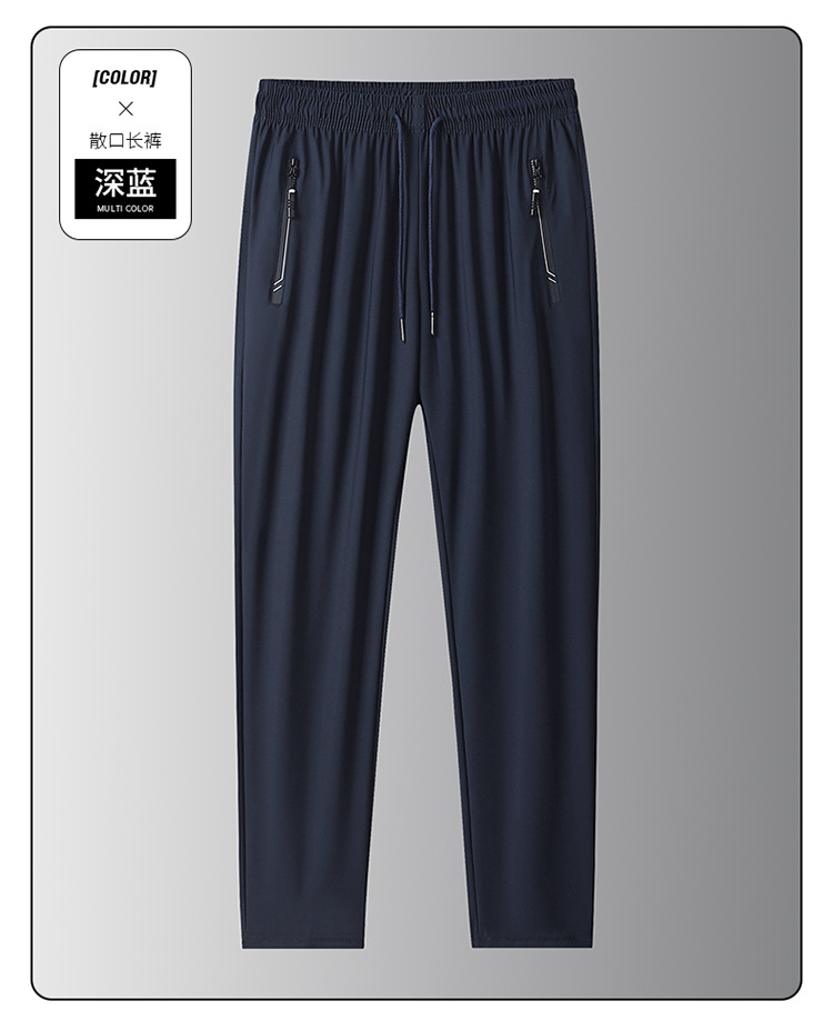 여름 남자 아이스 실크 바지 스트레이트 스트레치 단색 시원한 통기성 유행 유행 스포츠 캐주얼 바지 남성 바지스토어 가기