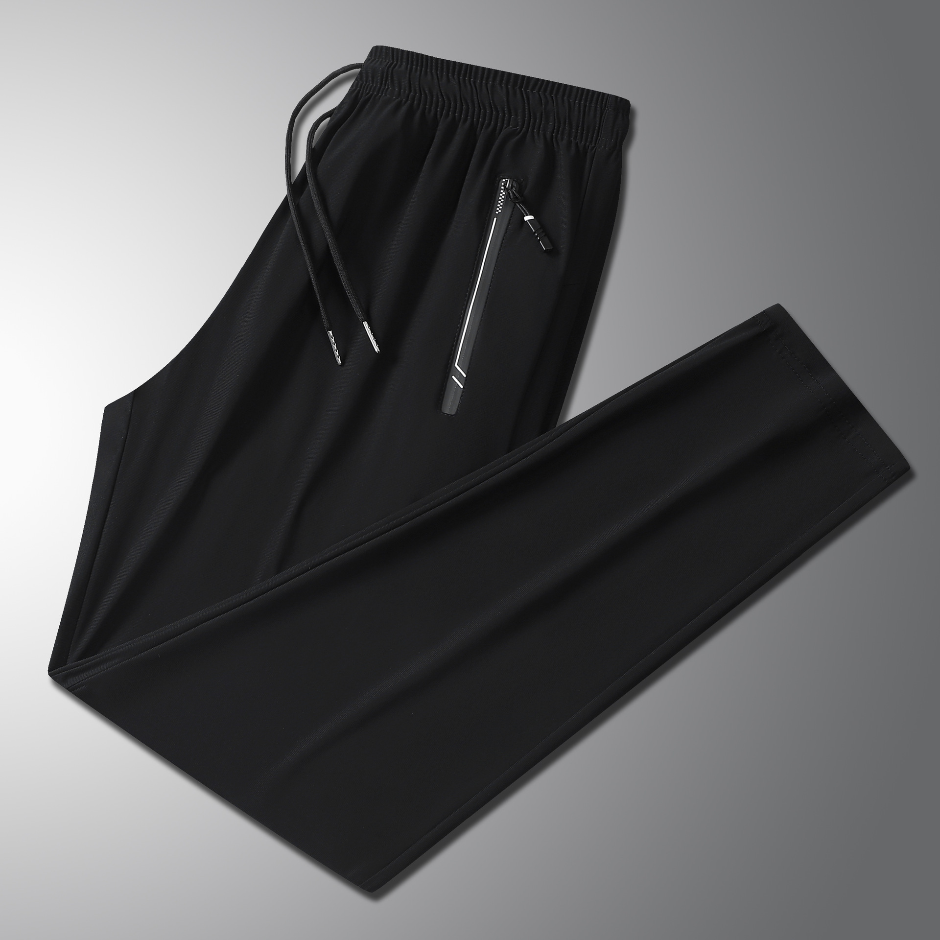 여름 남자 아이스 실크 바지 스트레이트 스트레치 단색 시원한 통기성 유행 유행 스포츠 캐주얼 바지 남성 바지