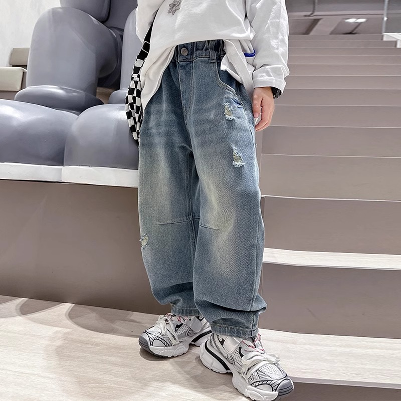 남아용 데님 팬츠 봄 가을 2025 신상 중대형 어린이 봄옷 긴바지 남자아이 바지 봄철 멋있고 트렌디함