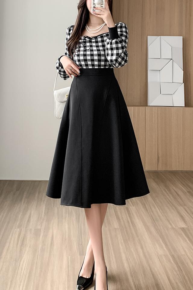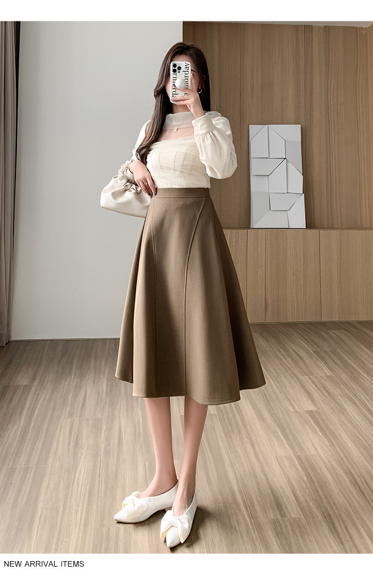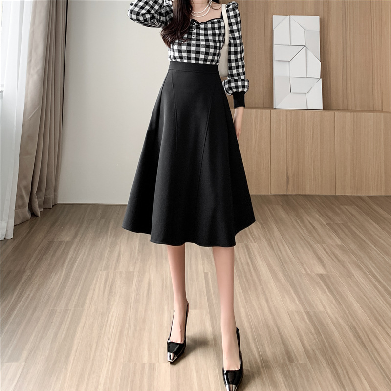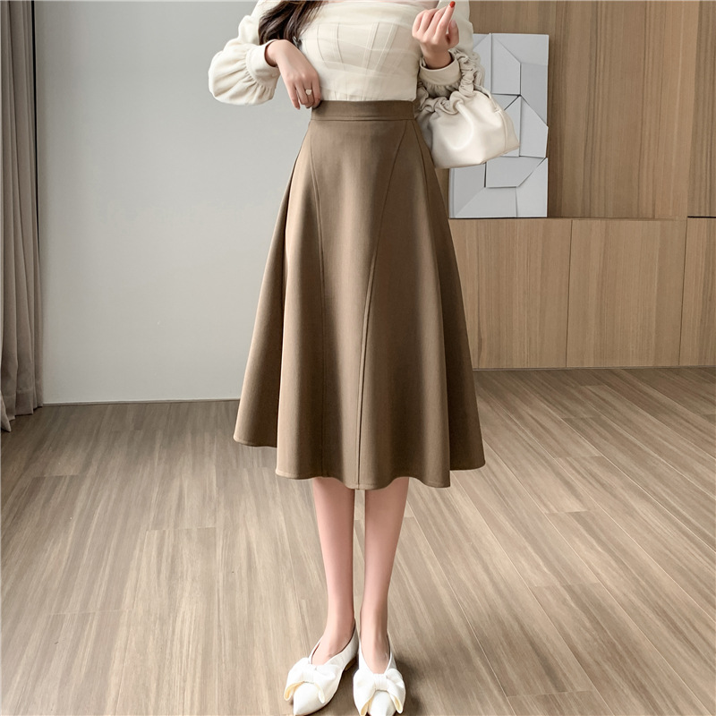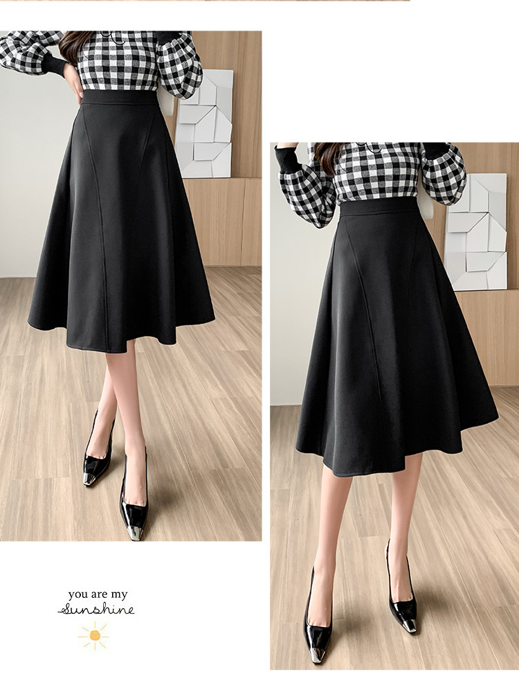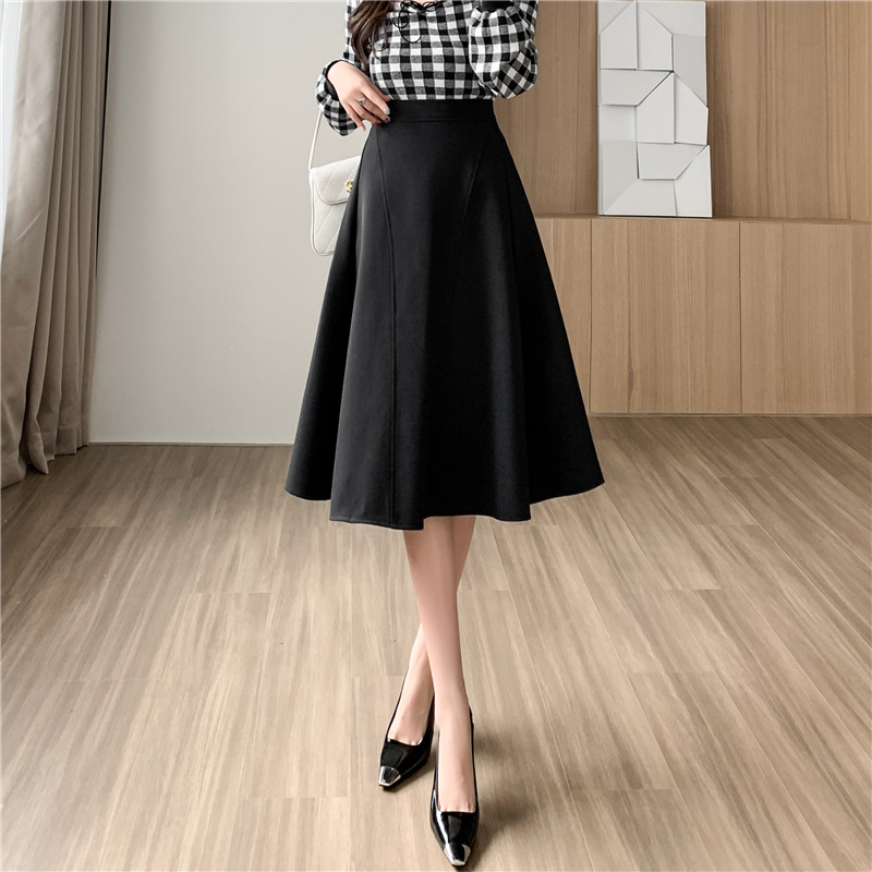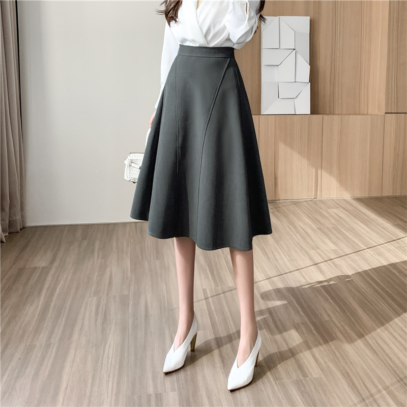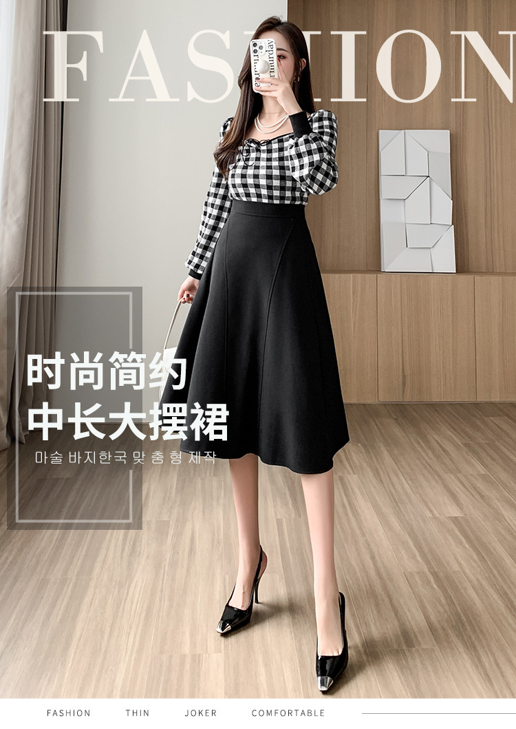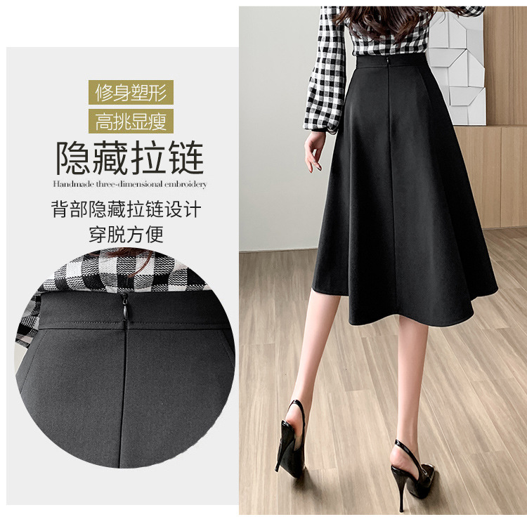 실제 촬영 비디오 2024 봄 새로운 패션 스커트 중간 길이 슬리밍 A 라인 스커트 롱 스커트 여성용 대형 스윙 스커트