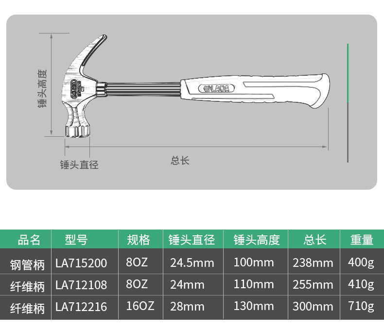• 강철 파이프 손잡이를 가진 발톱 망치