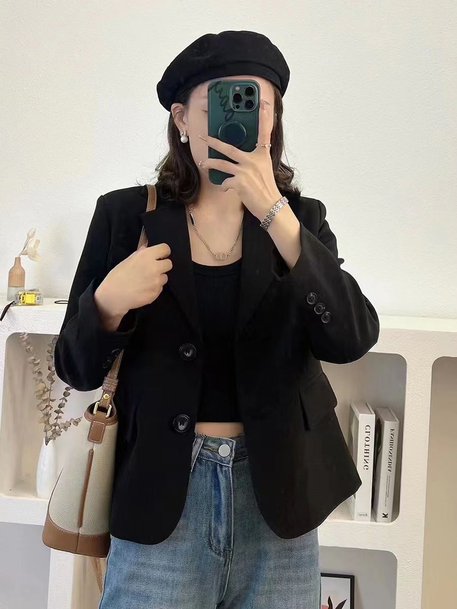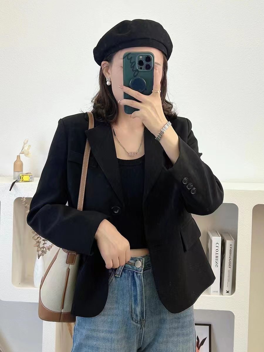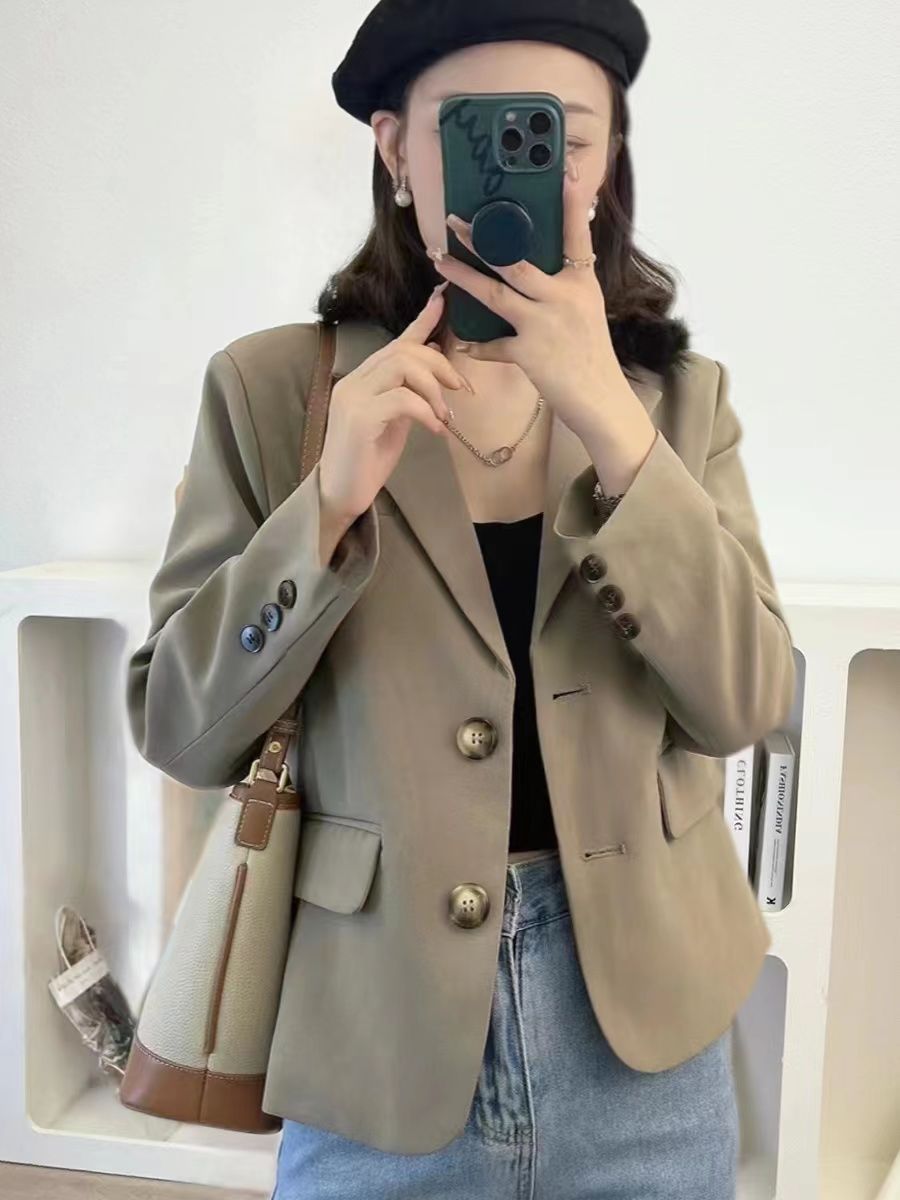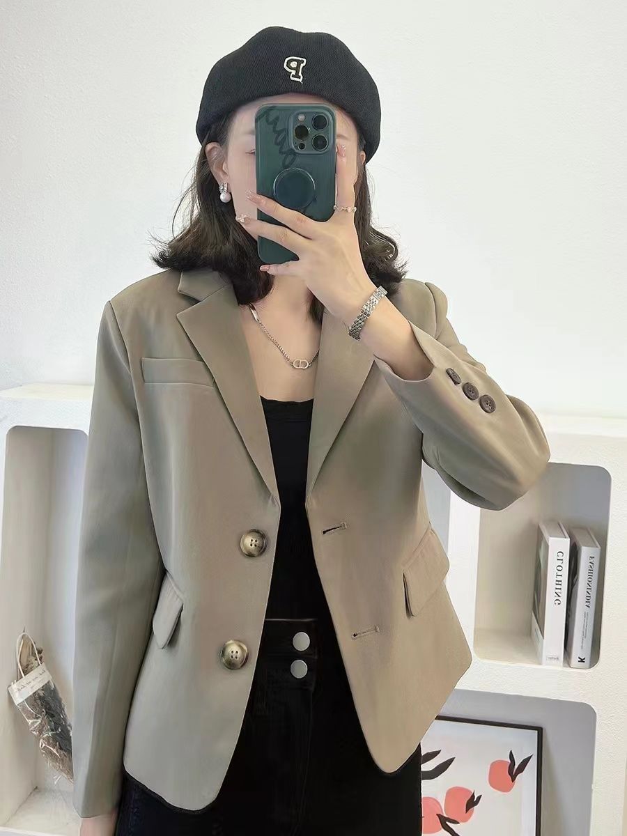게으른 스타일 세트 2024 봄과 여름 새로운 여성 자켓 고급 전문 세트 여성의 단색 세트 재킷 여성스토어 가기