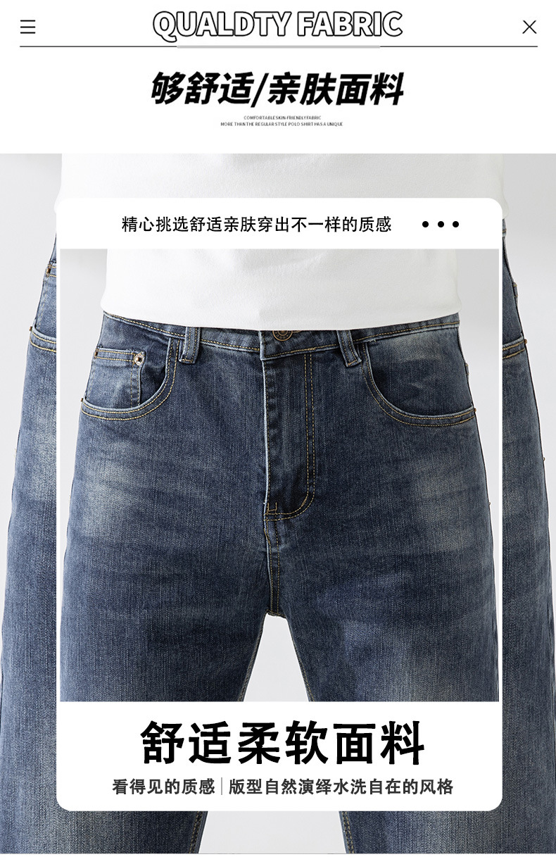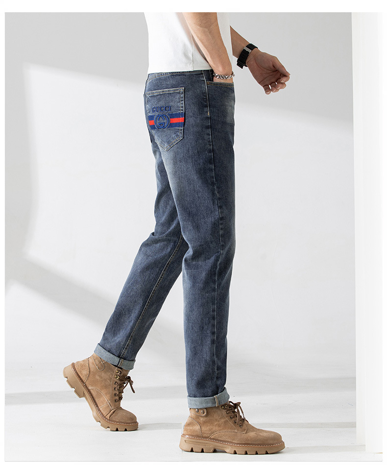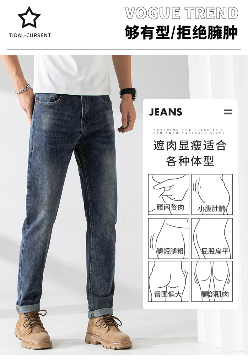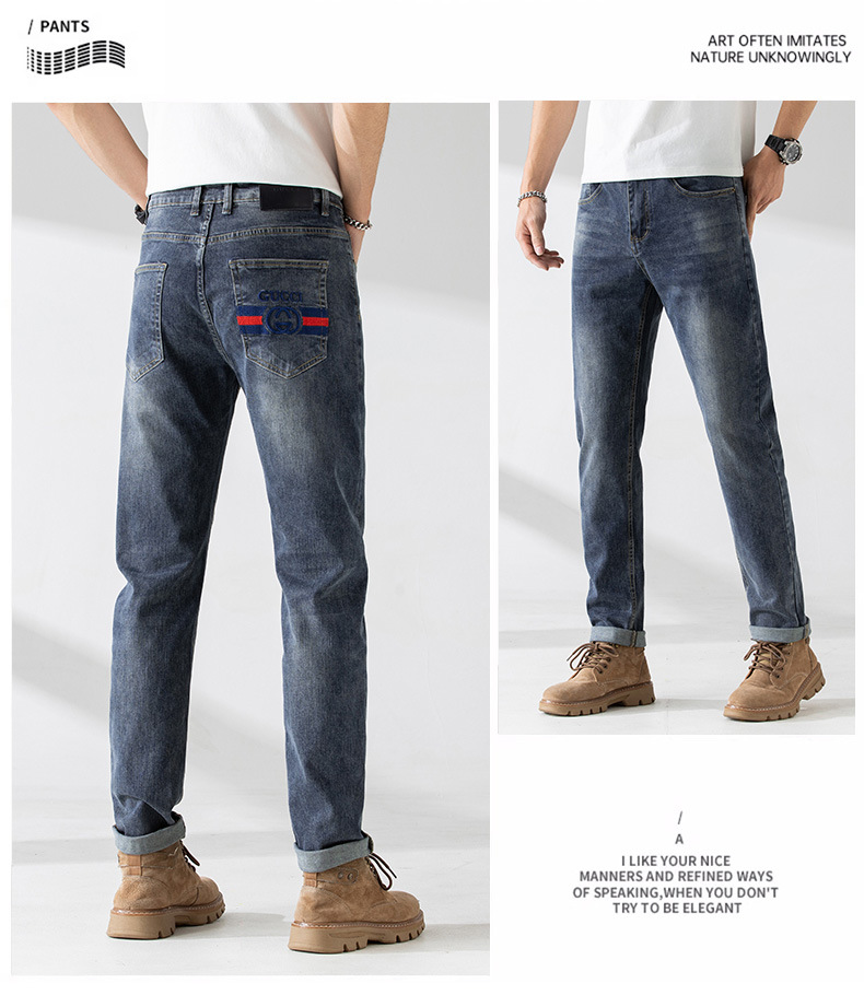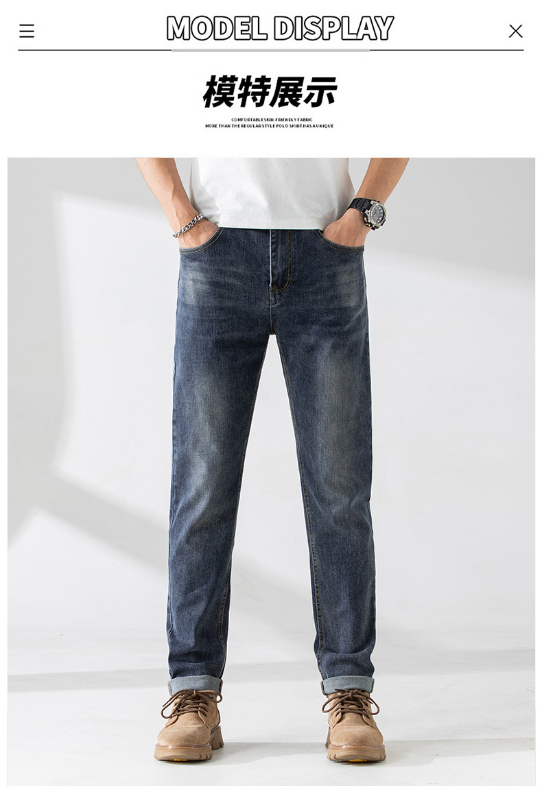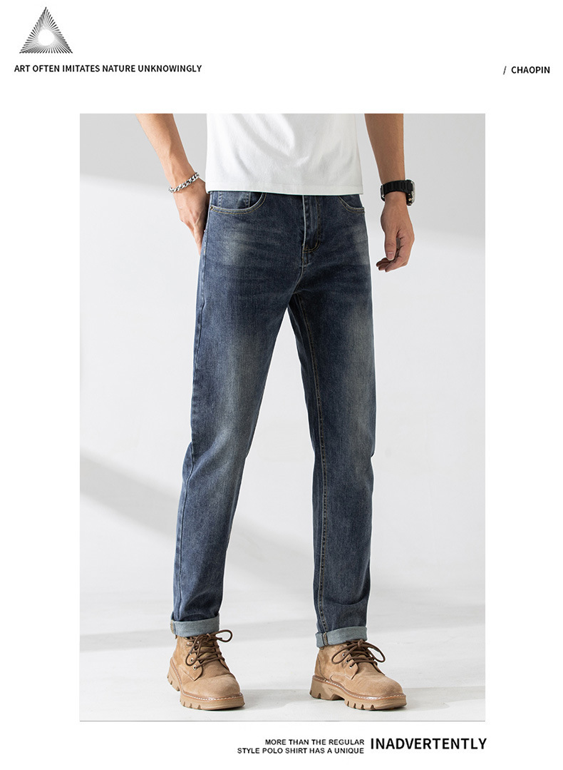가벼운 고급 품질의 봄과 여름 남성 청바지 슬림 핏 하이 엔드 스트레치 올 매치 블루 작은 스트레이트 레그 바지 사계절스토어 가기