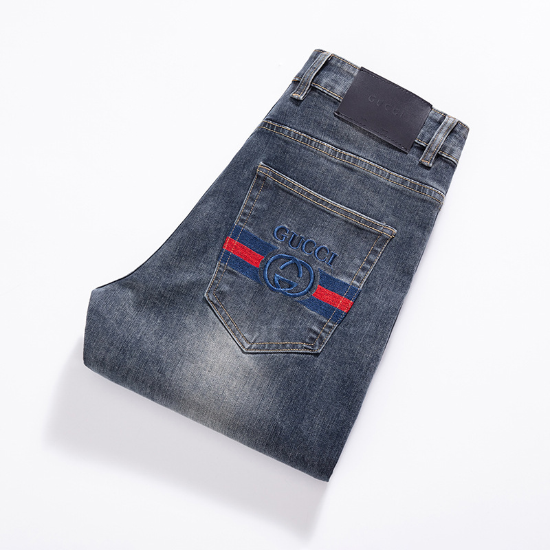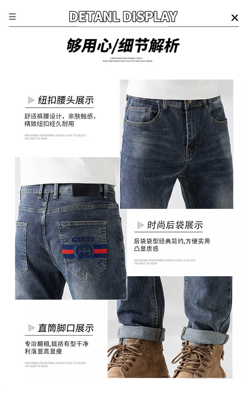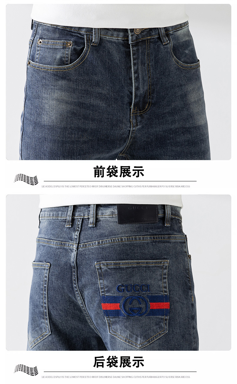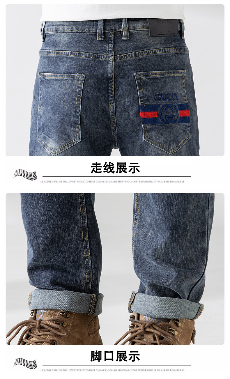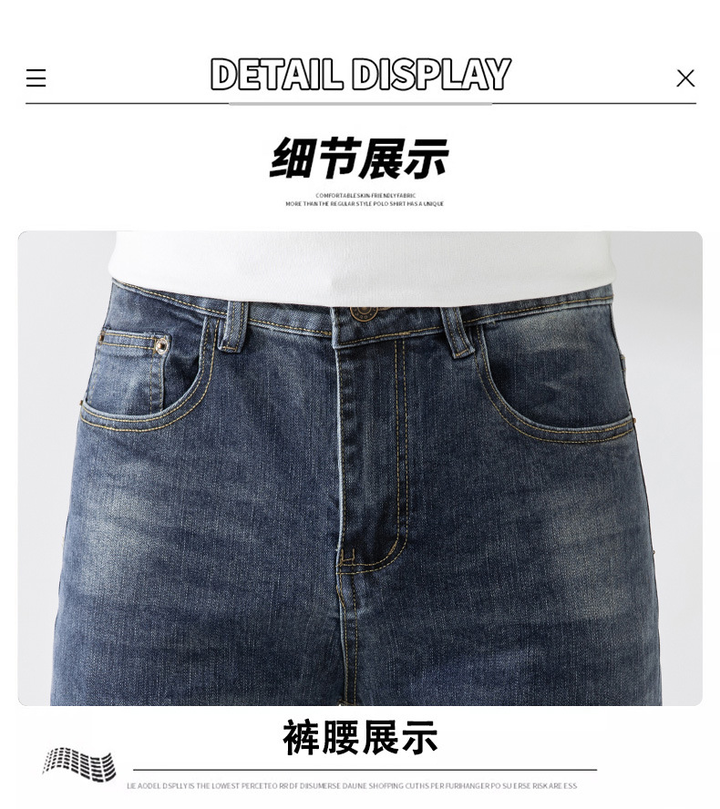 가벼운 고급 품질의 봄과 여름 남성 청바지 슬림 핏 하이 엔드 스트레치 올 매치 블루 작은 스트레이트 레그 바지 사계절스토어 가기