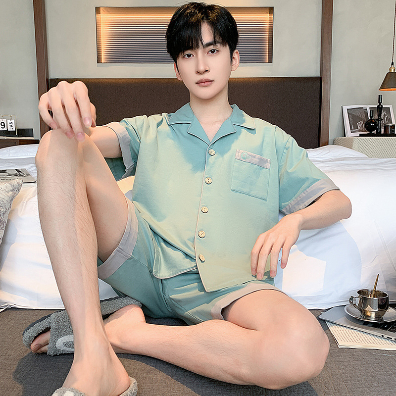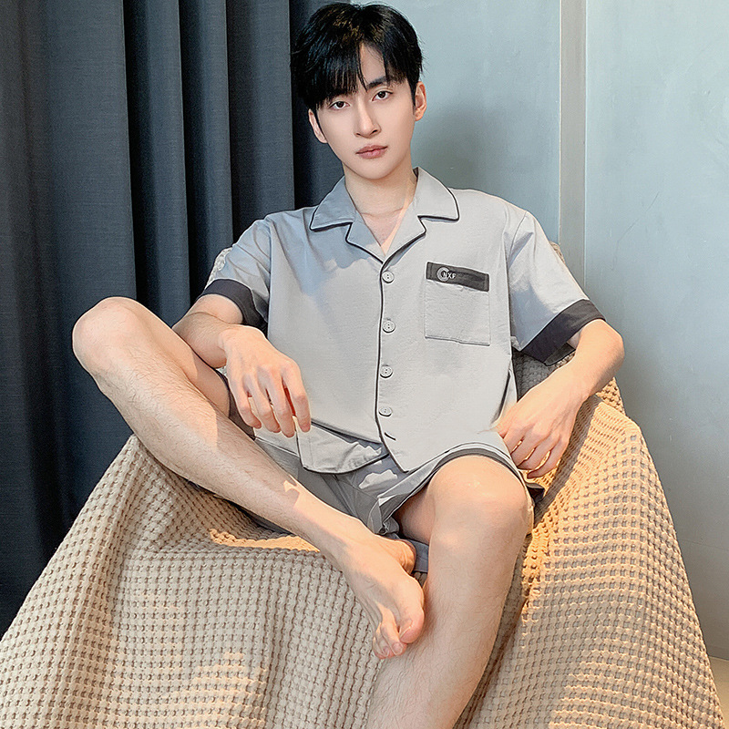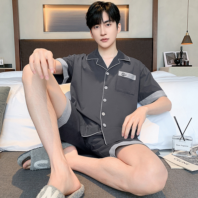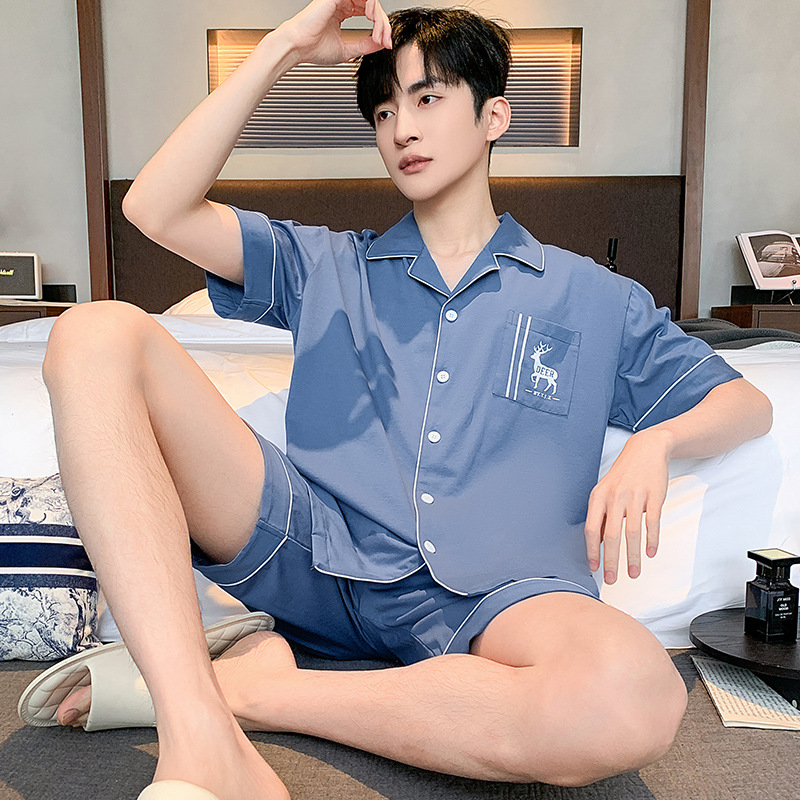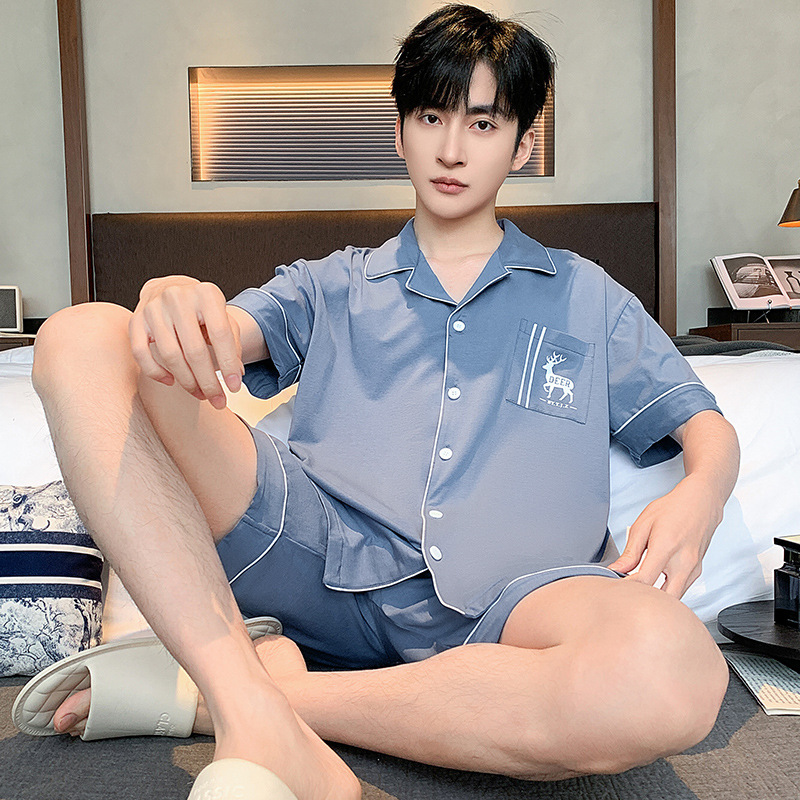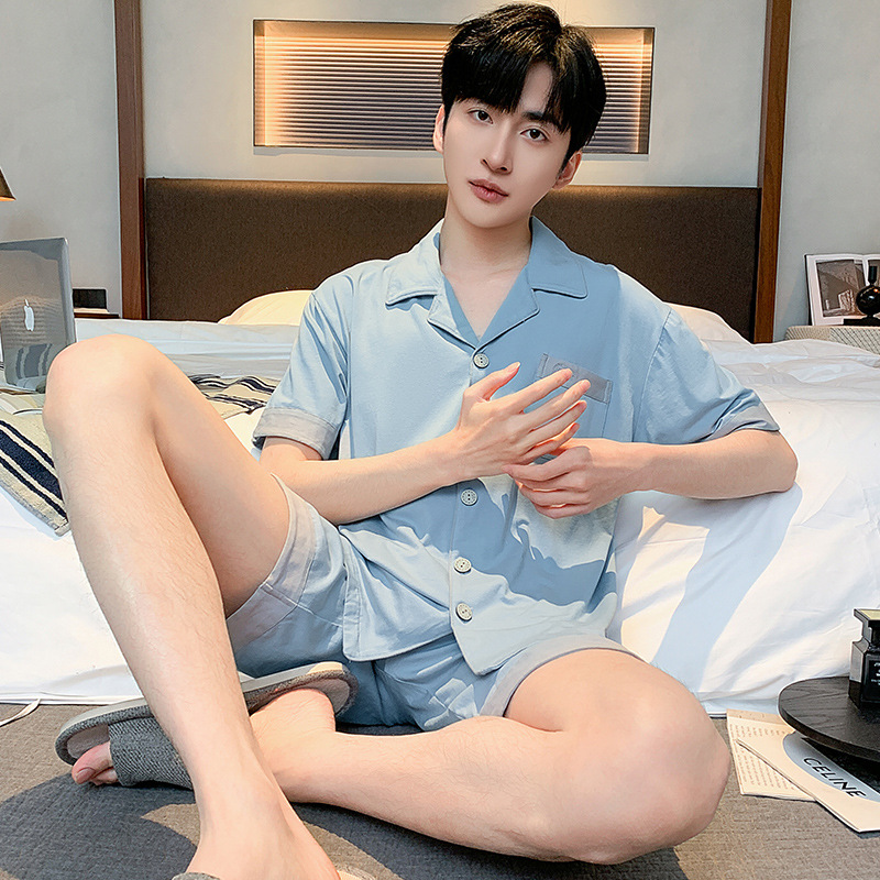 2024 봄과 여름 남성 잠옷 모달면 고급 간단한 청소년 반팔 반바지 카디건 세트 플러스 사이즈스토어 가기