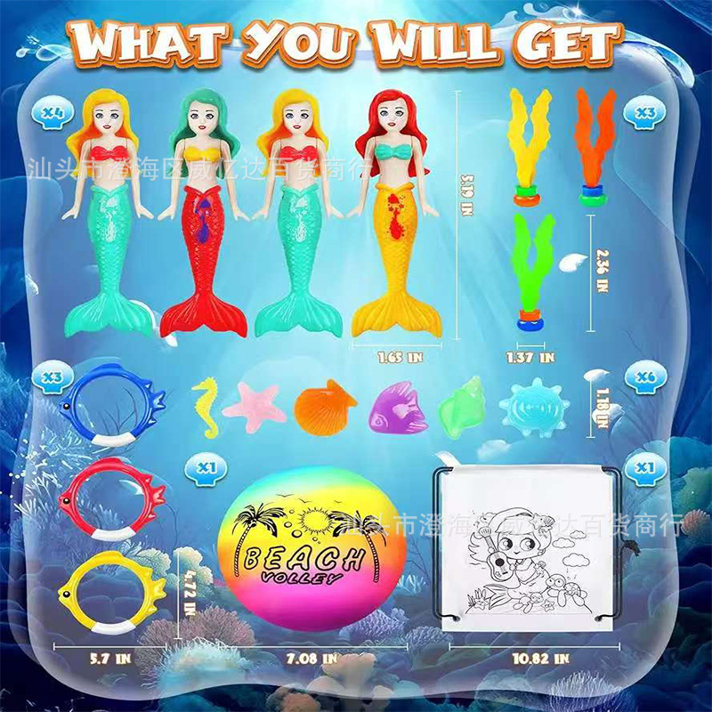 여름 어린이 물 링 인어 해초 어뢰 장난감 도매 세트 국경 온수 수영장 다이빙 장난감스토어 가기
