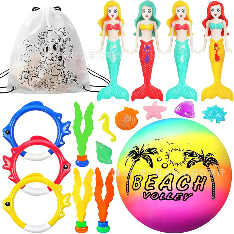 여름 어린이 물 링 인어 해초 어뢰 장난감 도매 세트 국경 온수 수영장 다이빙 장난감