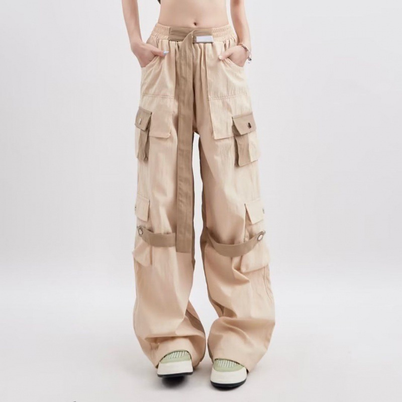 2024 여름 미국 복고풍 스타일 야외 등산 바지 어린이 작은 기능성 바지 스트레이트-다리 잡힌 바지 하이 스트리트 타이드