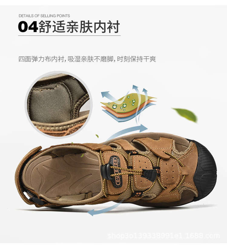 국경 간 플러스 사이즈 아마존 여름 Cowhide 샌들 cowhide 야외 업스트림 신발 캐주얼 남성용 비치 슈즈 샌들스토어 가기