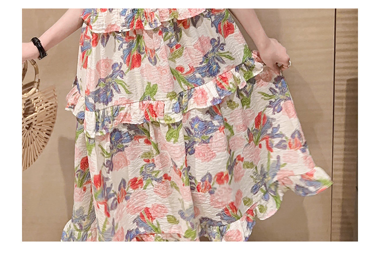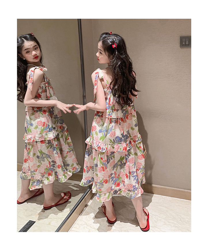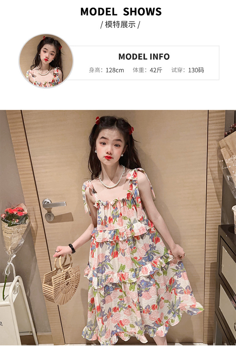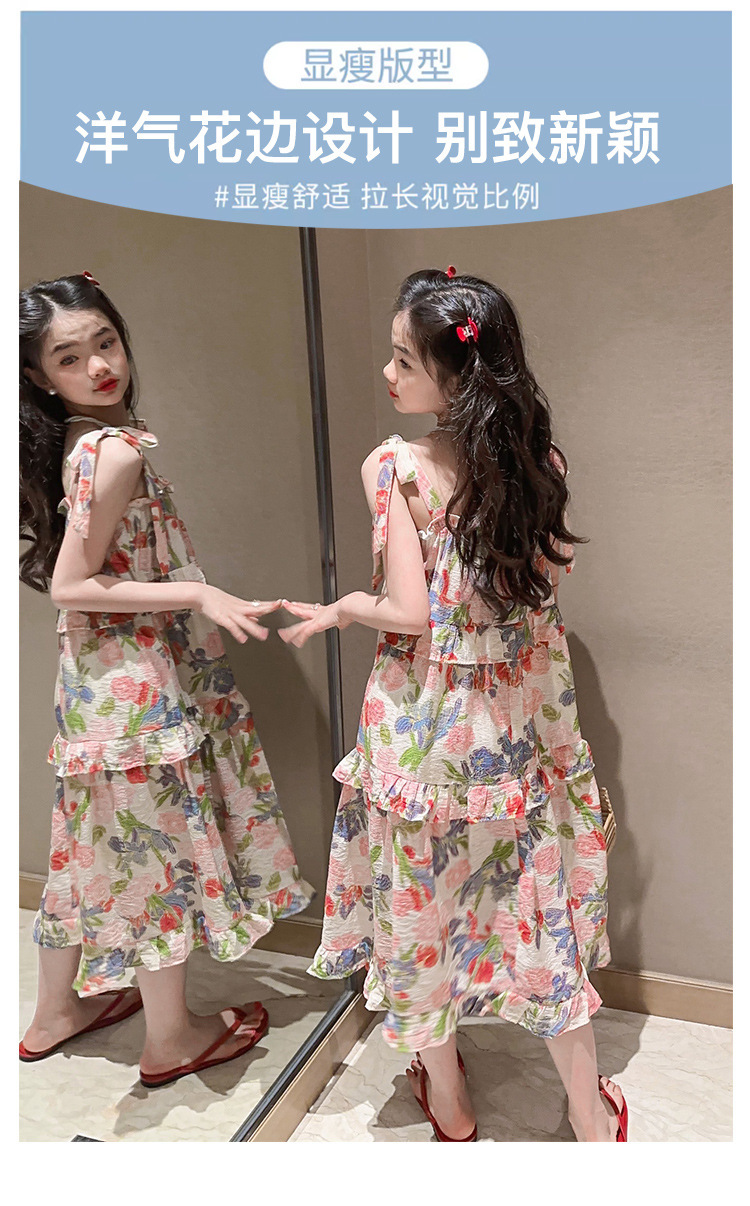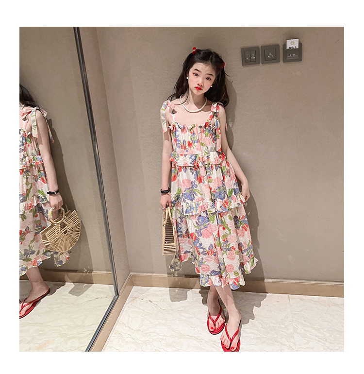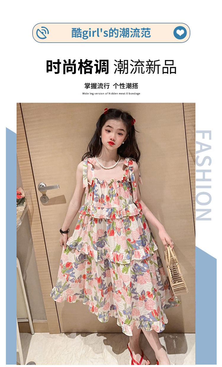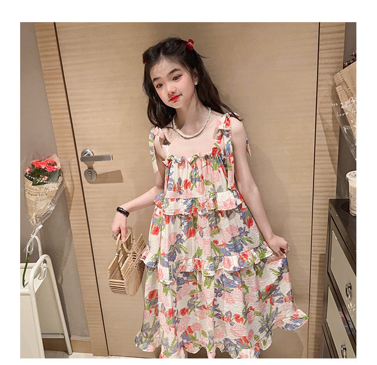 여아용 멜빵 원피스 여름 2024 신상 아동 쉬폰 원피스 세련된 꽃무늬 민소매 비치 원피스 드레스 공주풍스토어 가기