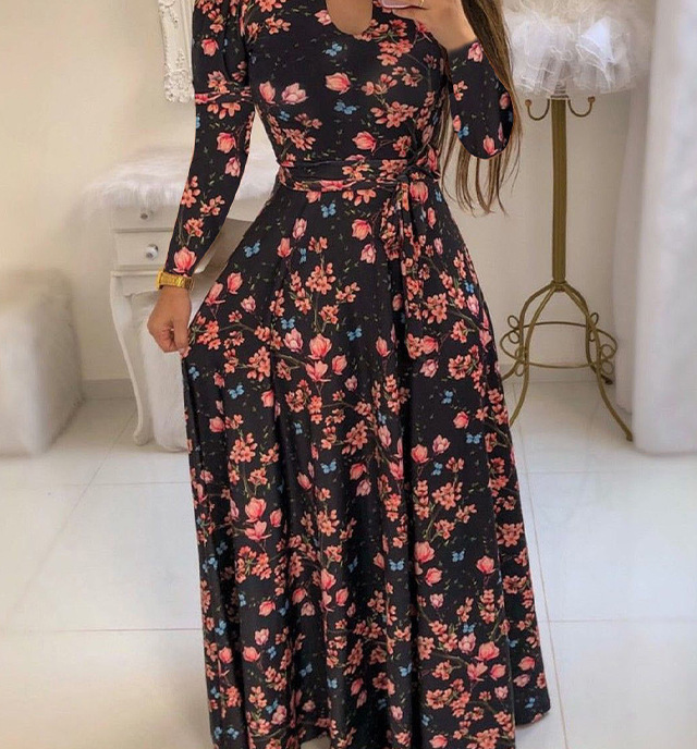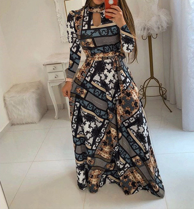 2024 현명한 아마존 섹시한 패션 디지털 인쇄 유럽과 미국의 패션 스타일 큰 스윙 스커트 원피스스토어 가기