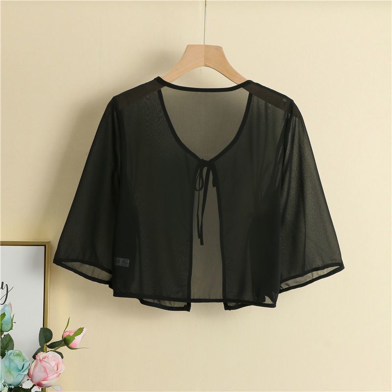 시폰 짧은 목도리 여성 2024 여름 외부 카디건 치삼 스커트 얇은 코트 태양 보호 의류 양복 조끼스토어 가기