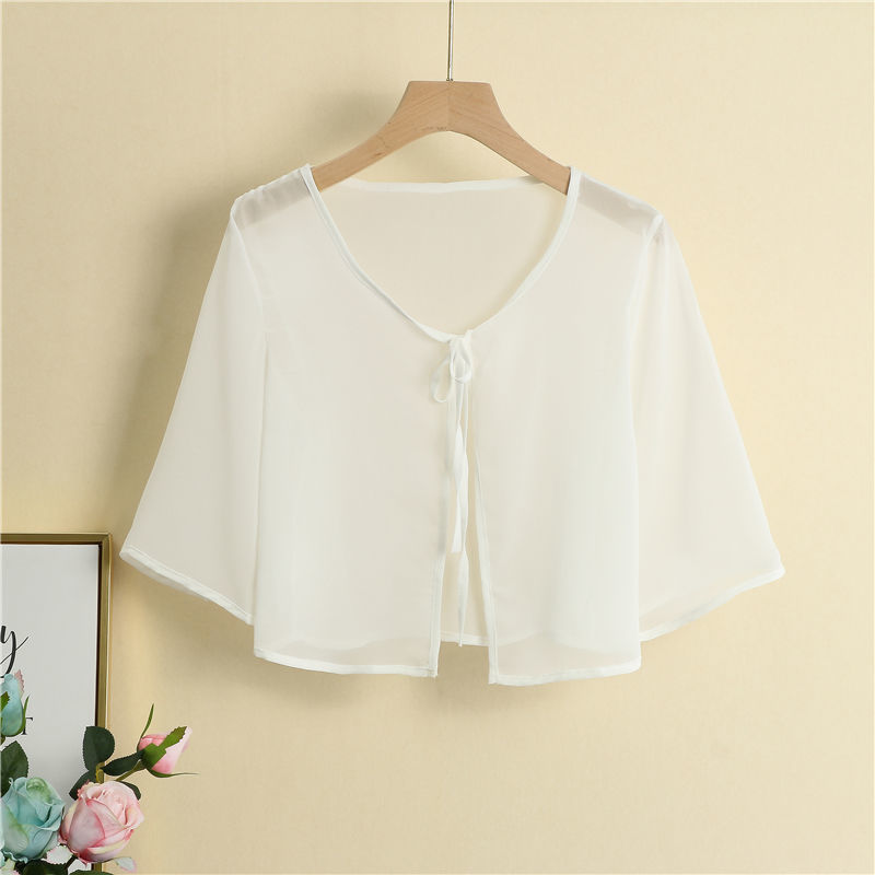 시폰 짧은 목도리 여성 2024 여름 외부 카디건 치삼 스커트 얇은 코트 태양 보호 의류 양복 조끼