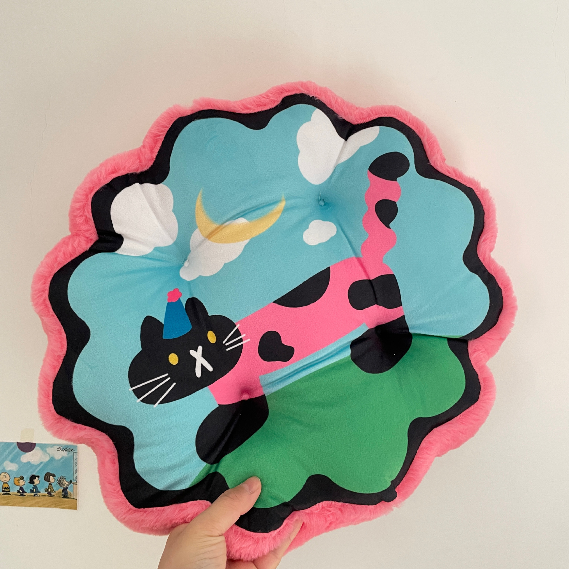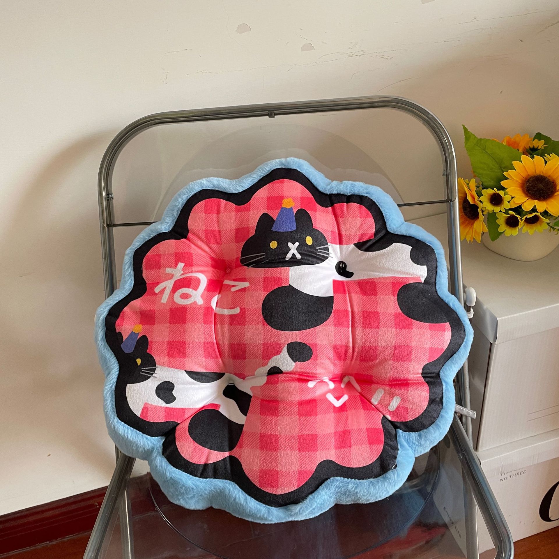 • [도파민 두꺼운 쿠션] 둥근 하늘 핑크 고양이