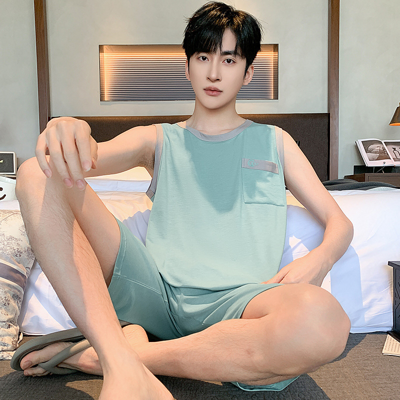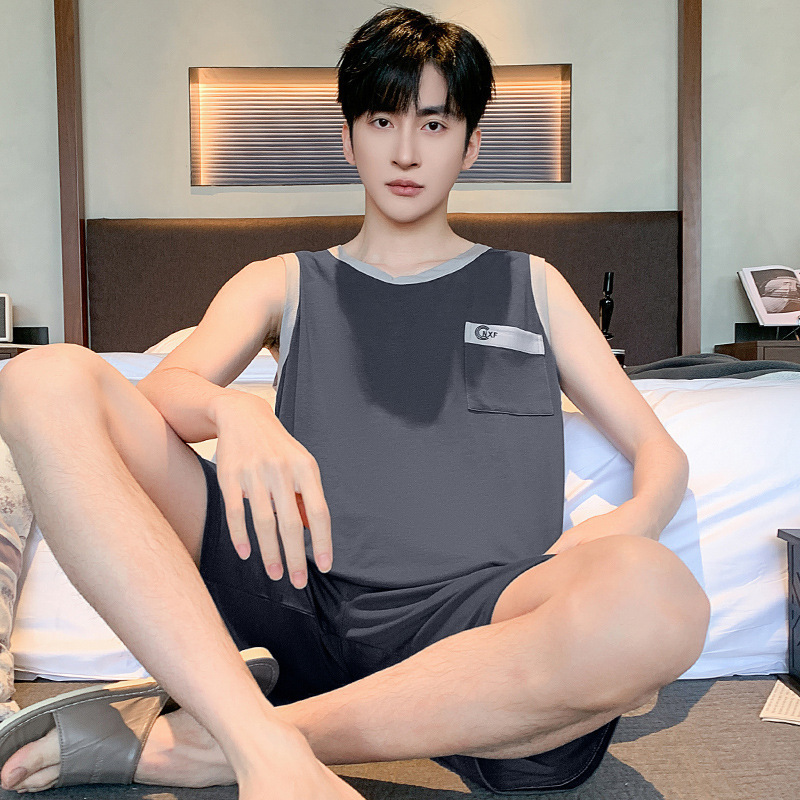공장 직접 모달 파자마 남성 여름 조끼 반바지 얇은 민소매 플러스 사이즈 청소년 홈웨어 세트
