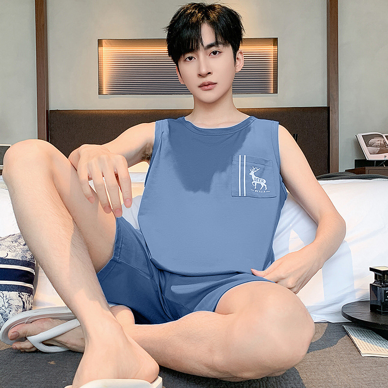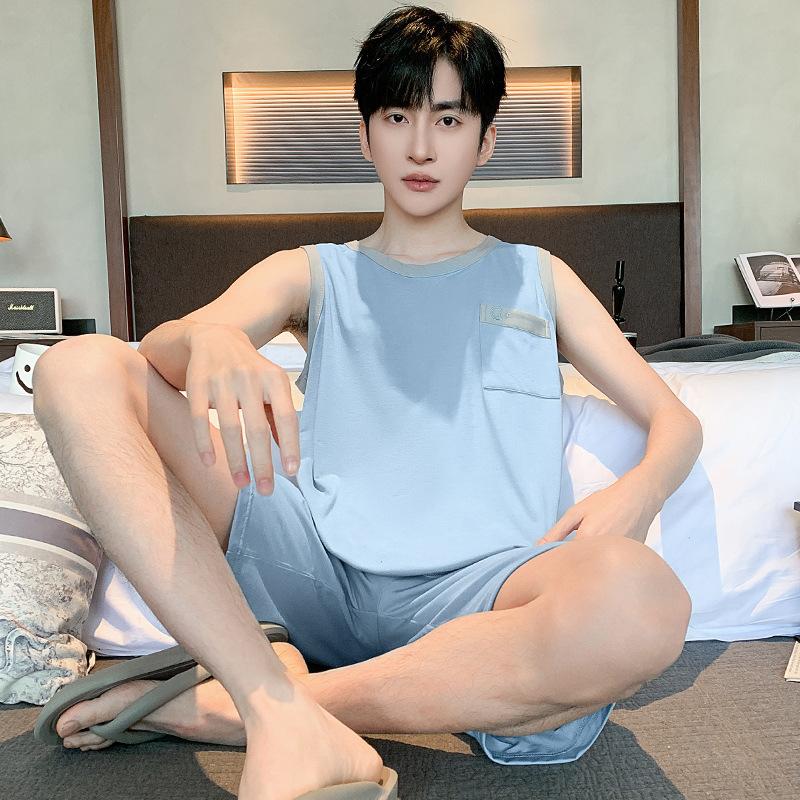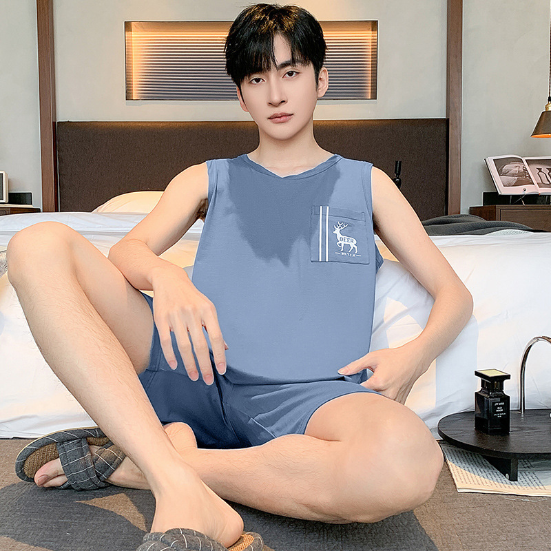 공장 직접 모달 파자마 남성 여름 조끼 반바지 얇은 민소매 플러스 사이즈 청소년 홈웨어 세트스토어 가기
