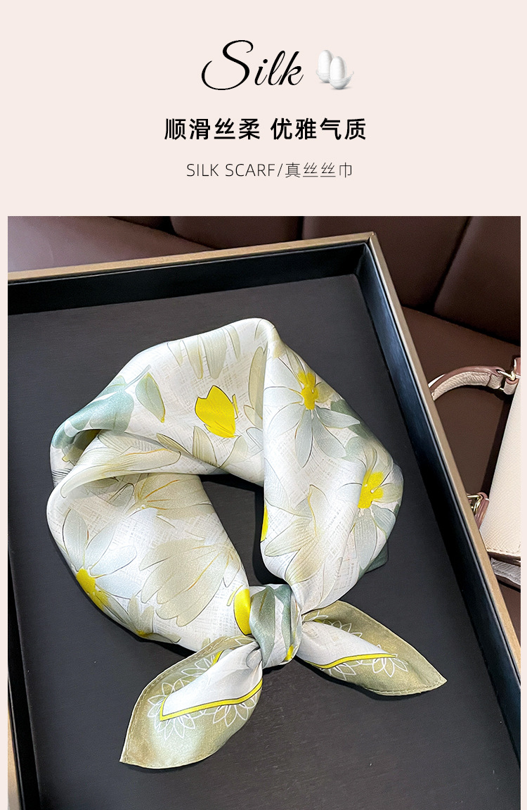 여성을위한 작은 사각형 스카프 봄 다목적 우아한 꽃 실크 스카프 100% 뽕나무 실크 장식 스카프 인터넷 유명 인사 작은 스카프스토어 가기