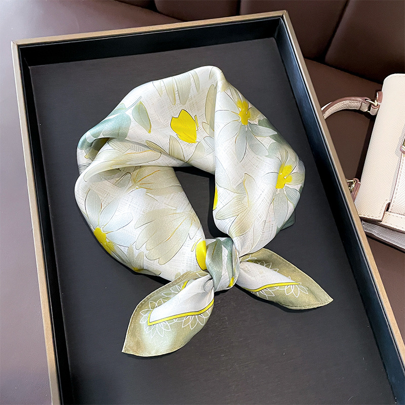 여성을위한 작은 사각형 스카프 봄 다목적 우아한 꽃 실크 스카프 100% 뽕나무 실크 장식 스카프 인터넷 유명 인사 작은 스카프