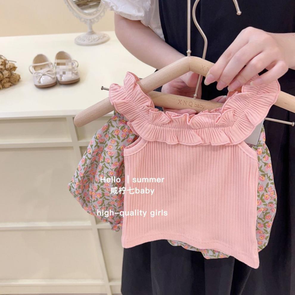 여아 여름 패션 슈트 새로운 스타일 베이비 한국 여름 어린이 조끼 반바지 투피스 세트