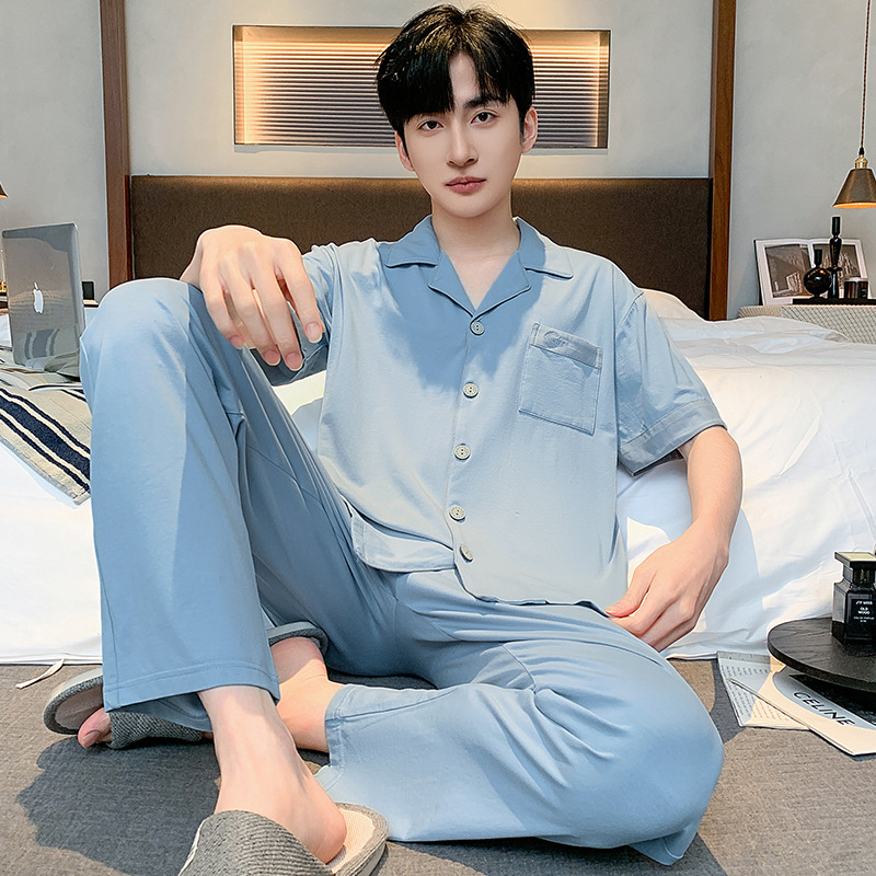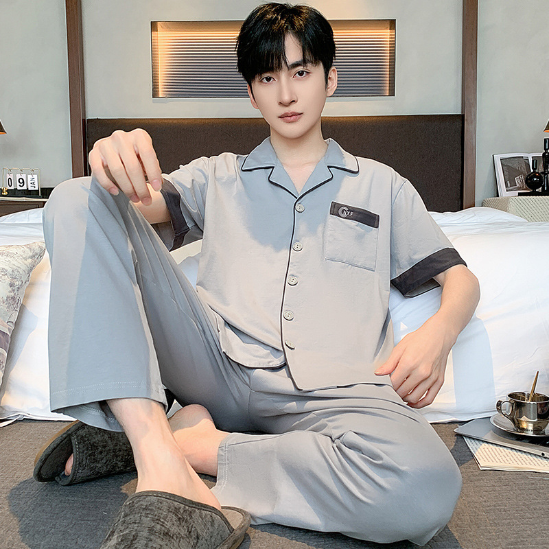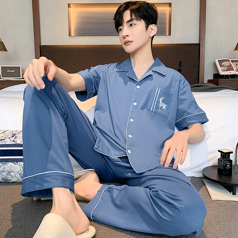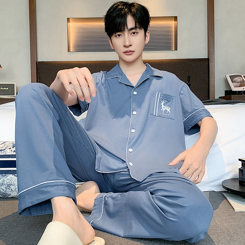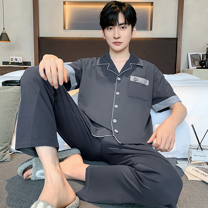 잠옷 남자 여름 모달 반팔 바지 캐주얼 카디건 플러스 사이즈 여름 남자 야외 홈웨어 세트