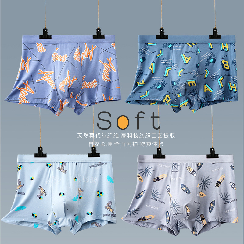 남성용 속옷 남성용 복서 면화 추적 없는 항균 젊은 중학생 고등학생 유행 남성용 인쇄 복서 반바지