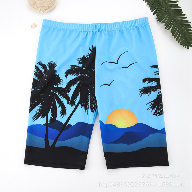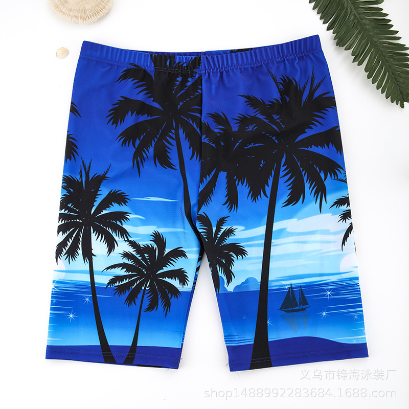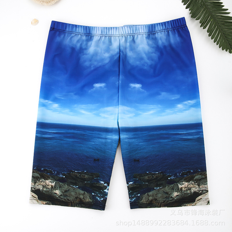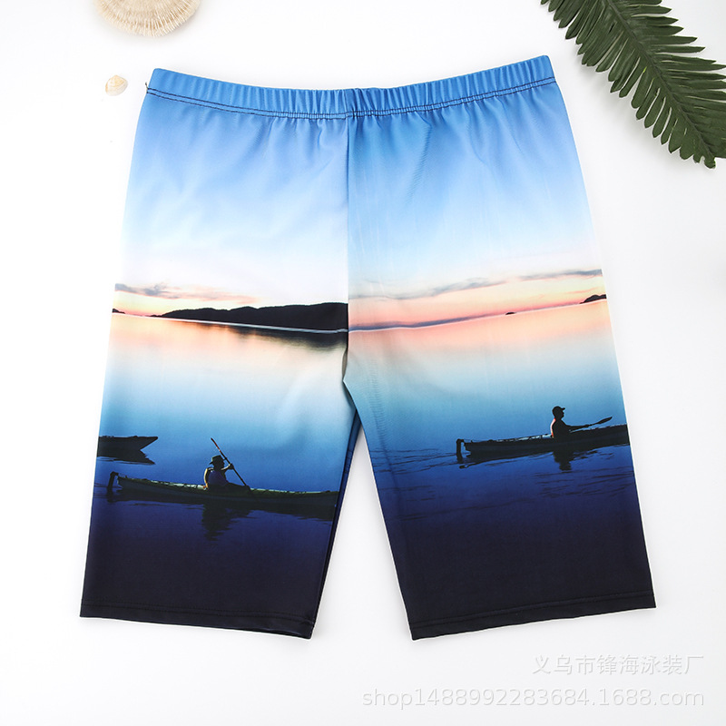 남자 수영 트렁크 긴 다리 디지털 인쇄 파란색 탄성 빠른 건조 근접 라이닝 안티 당혹감 해변 온천 7 바지