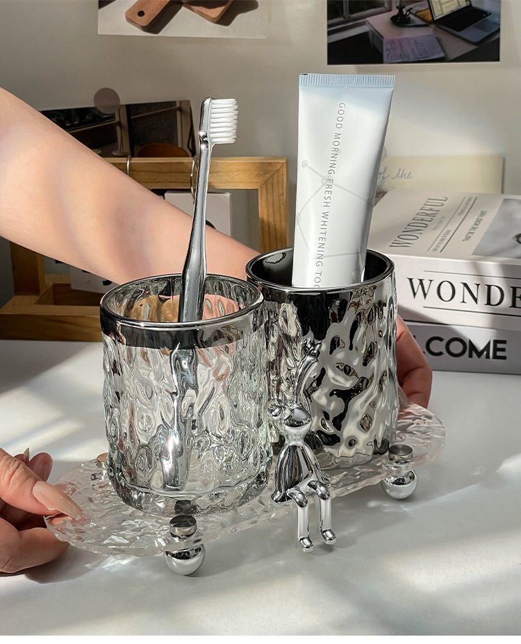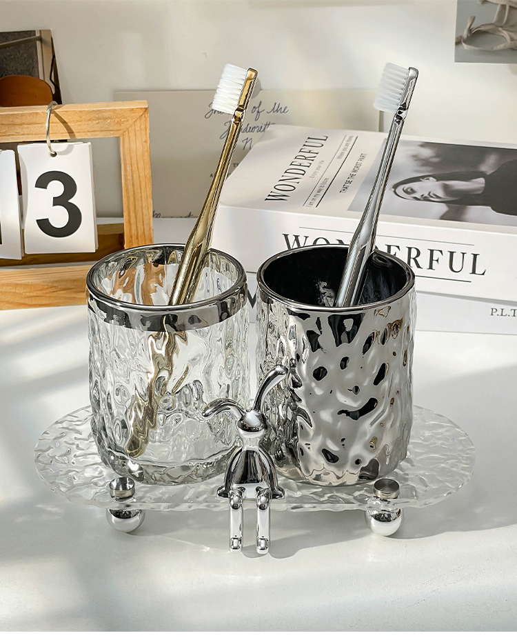 높은 모양의 구강 세정제 컵 유리 칫솔 컵 커플 치아 컵 고급 세척 컵 세트 가벼운 고급 치아 컵 보관 랙