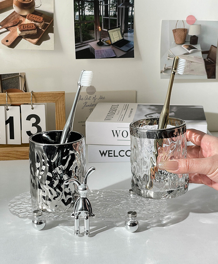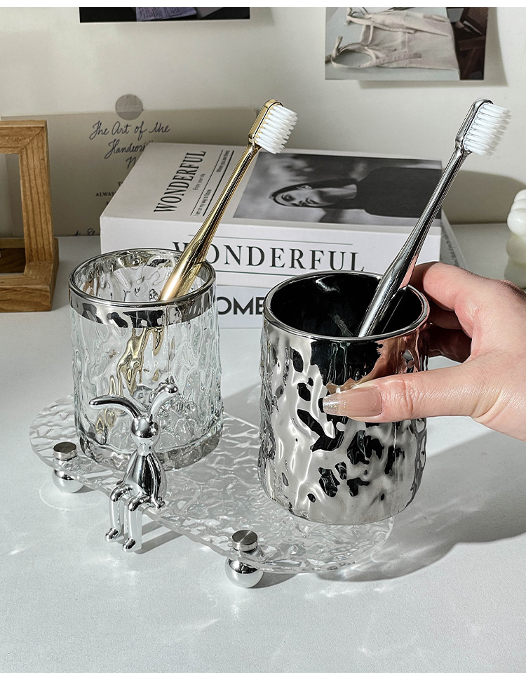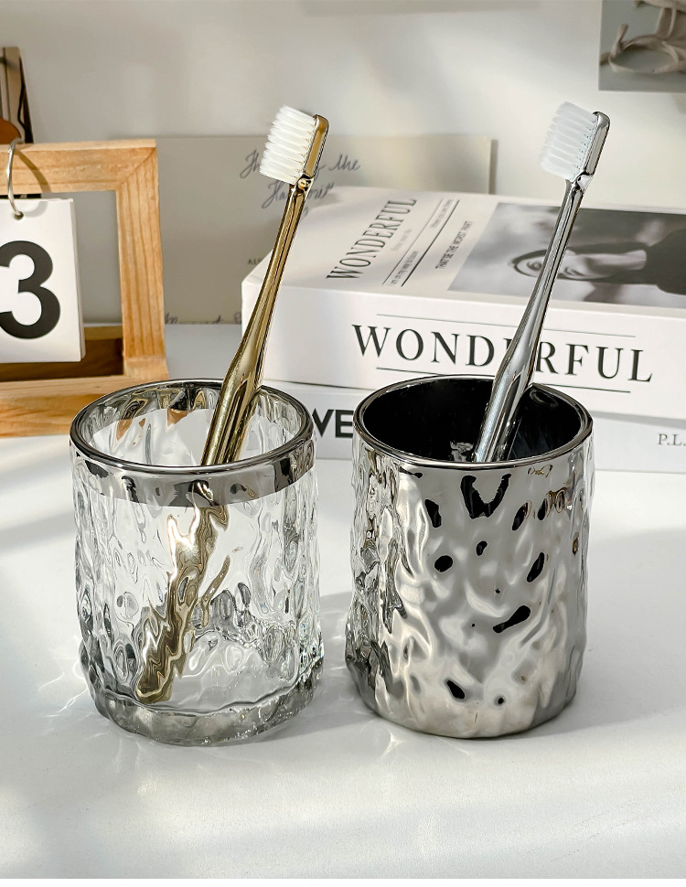 높은 모양의 구강 세정제 컵 유리 칫솔 컵 커플 치아 컵 고급 세척 컵 세트 가벼운 고급 치아 컵 보관 랙스토어 가기