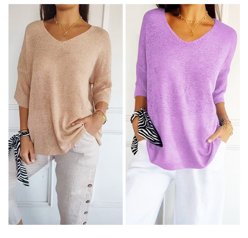 유럽과 미국의 니트웨어 대외 무역 캐주얼 스웨터 멀티 컬러 BASIC 슬림 V 넥 단색 스웨터 여성용 바닥 셔츠스토어 가기