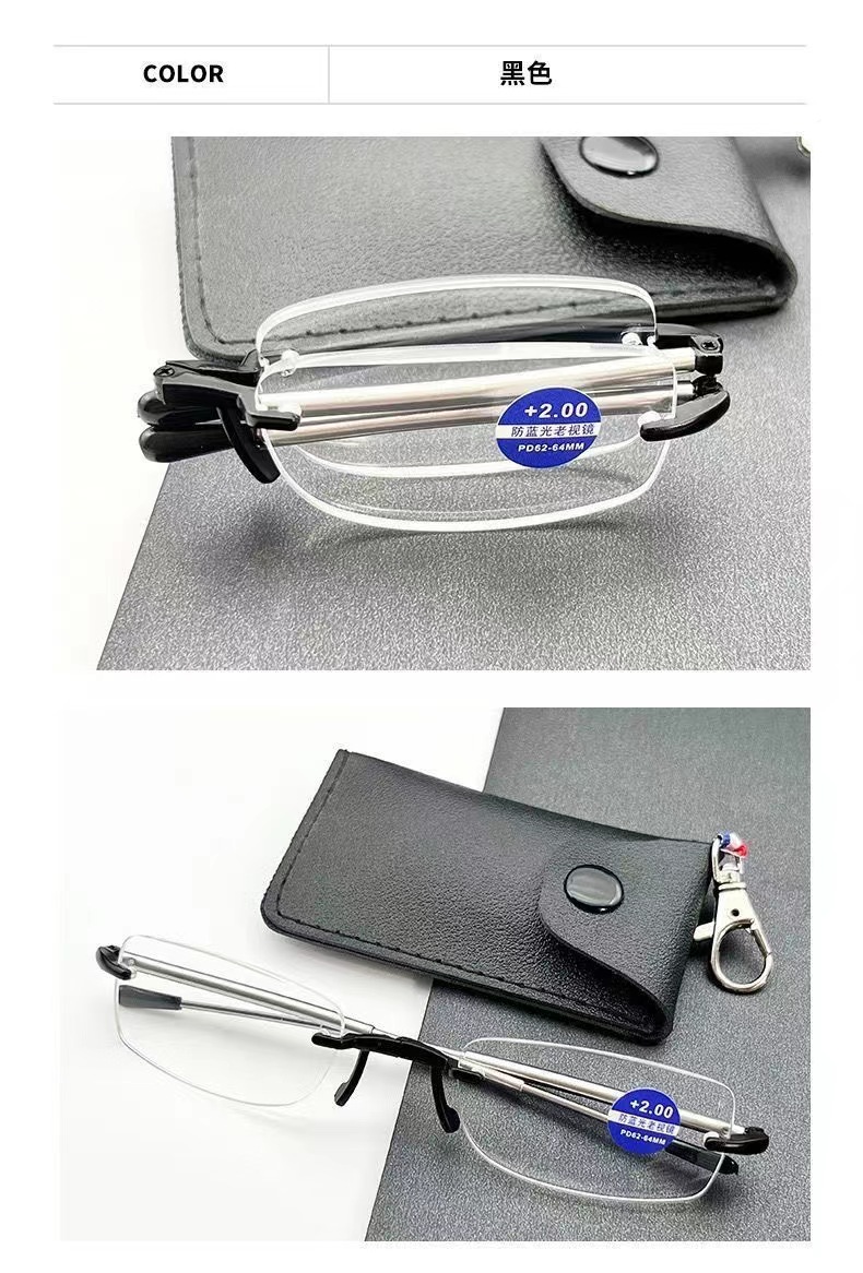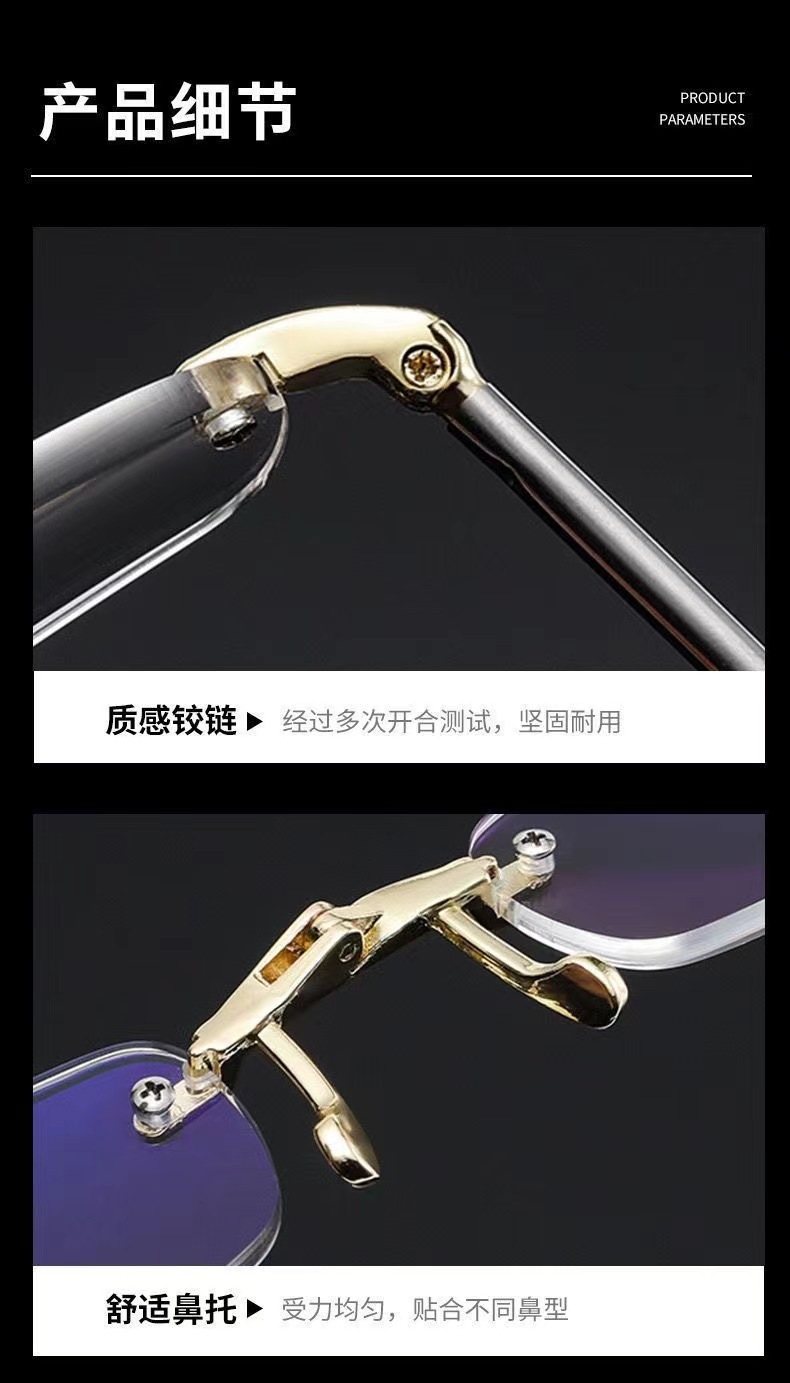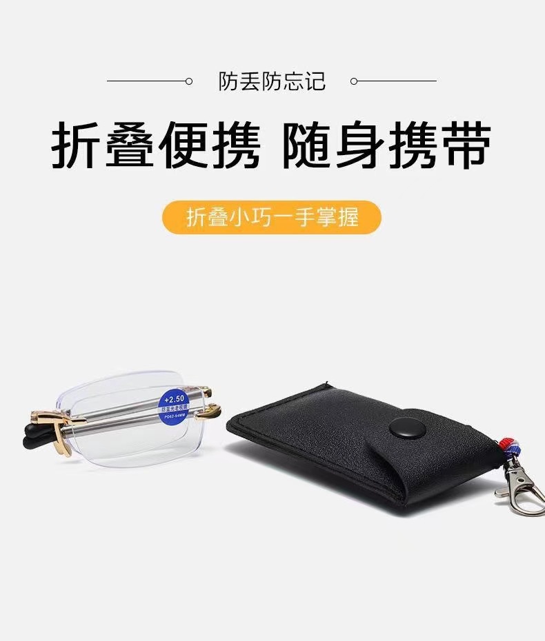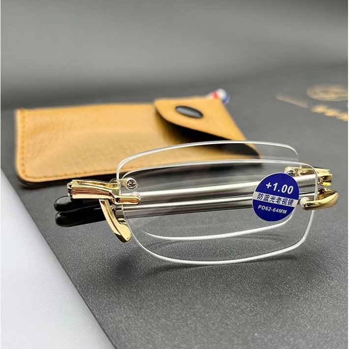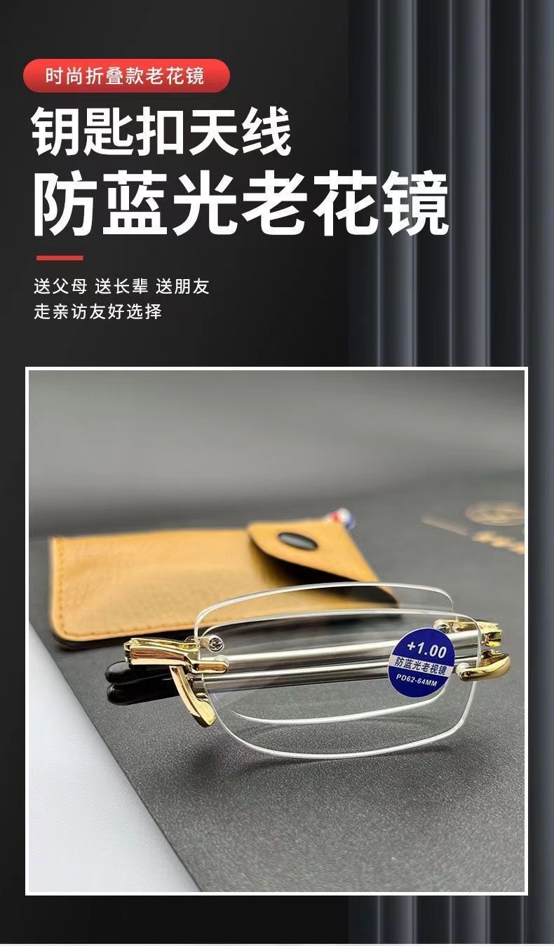 새로운 초경량 프레임리스 다이아몬드 컷 노안 안경 남성 키 체인 휴대용 접이식 안티 블루 라이트 노안 안경 도매스토어 가기