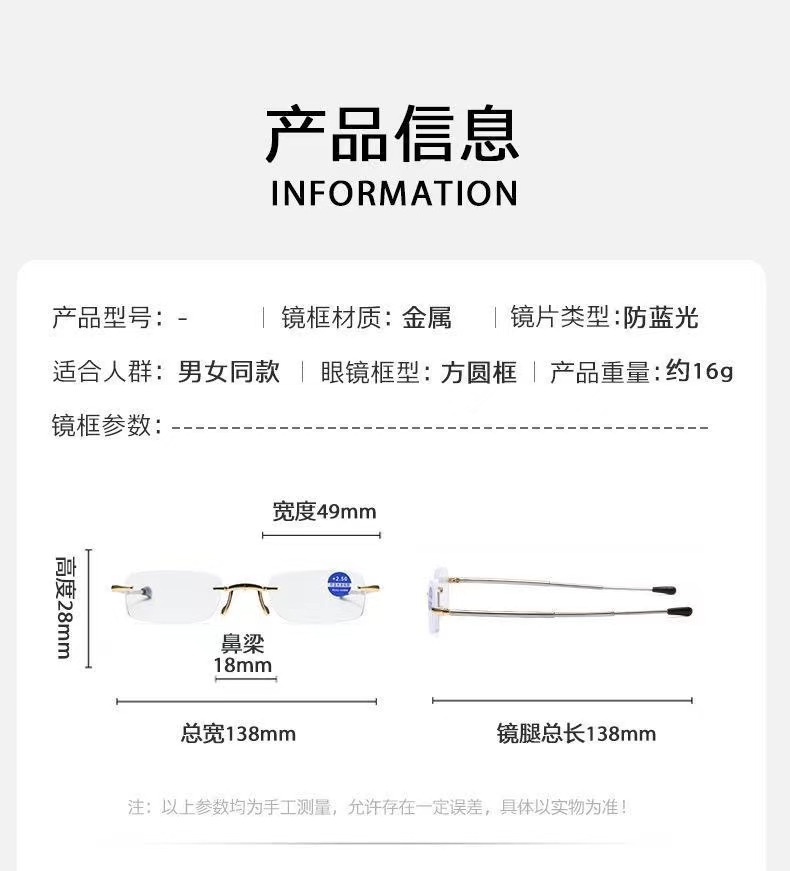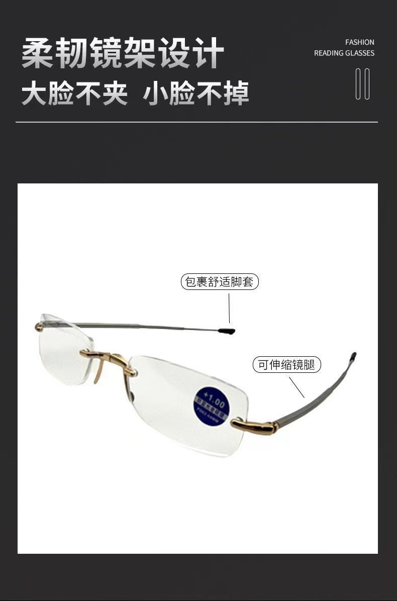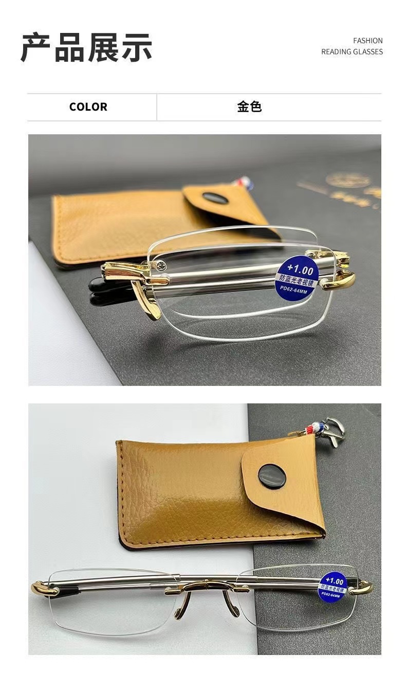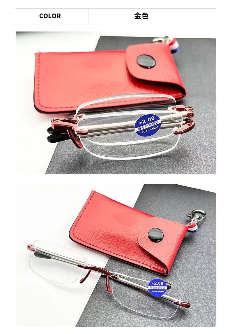 새로운 초경량 프레임리스 다이아몬드 컷 노안 안경 남성 키 체인 휴대용 접이식 안티 블루 라이트 노안 안경 도매스토어 가기