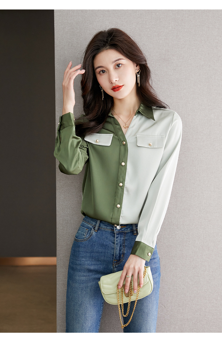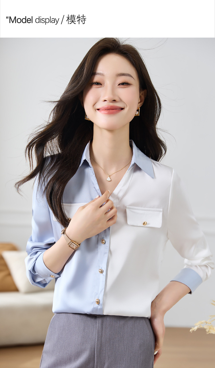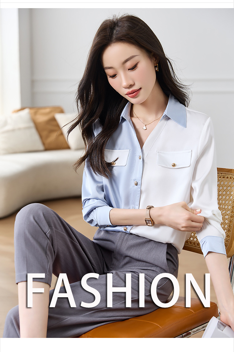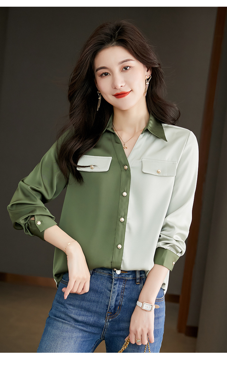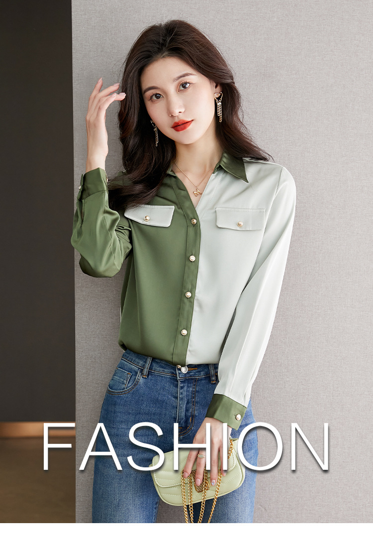 패션 V 넥 셔츠 여성의 2024 봄 새로운 도착 스티칭 홍콩 스타일 레트로 고급 쉬폰 셔츠 작은 셔츠스토어 가기