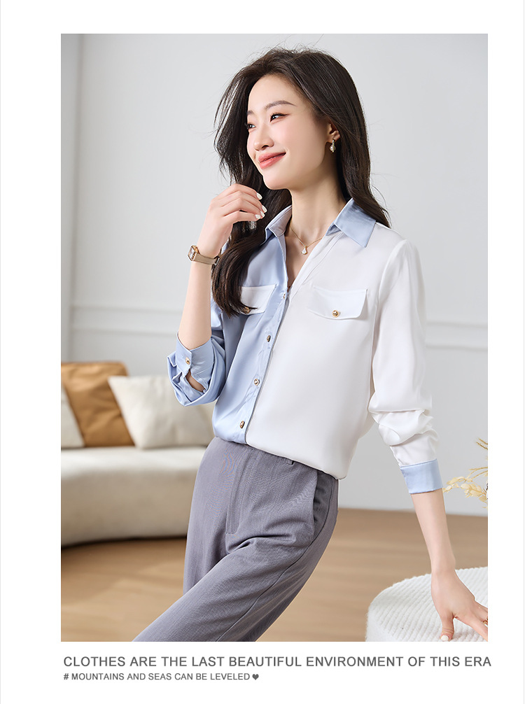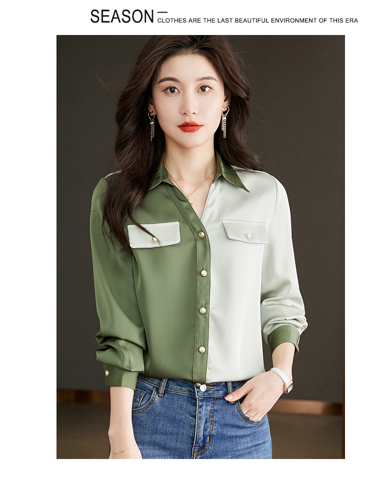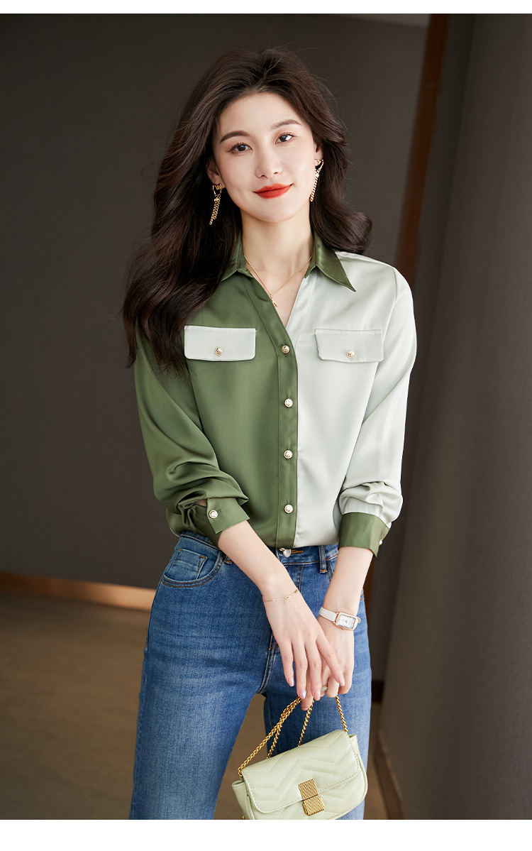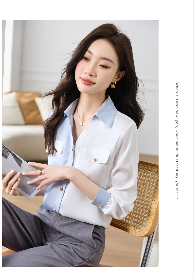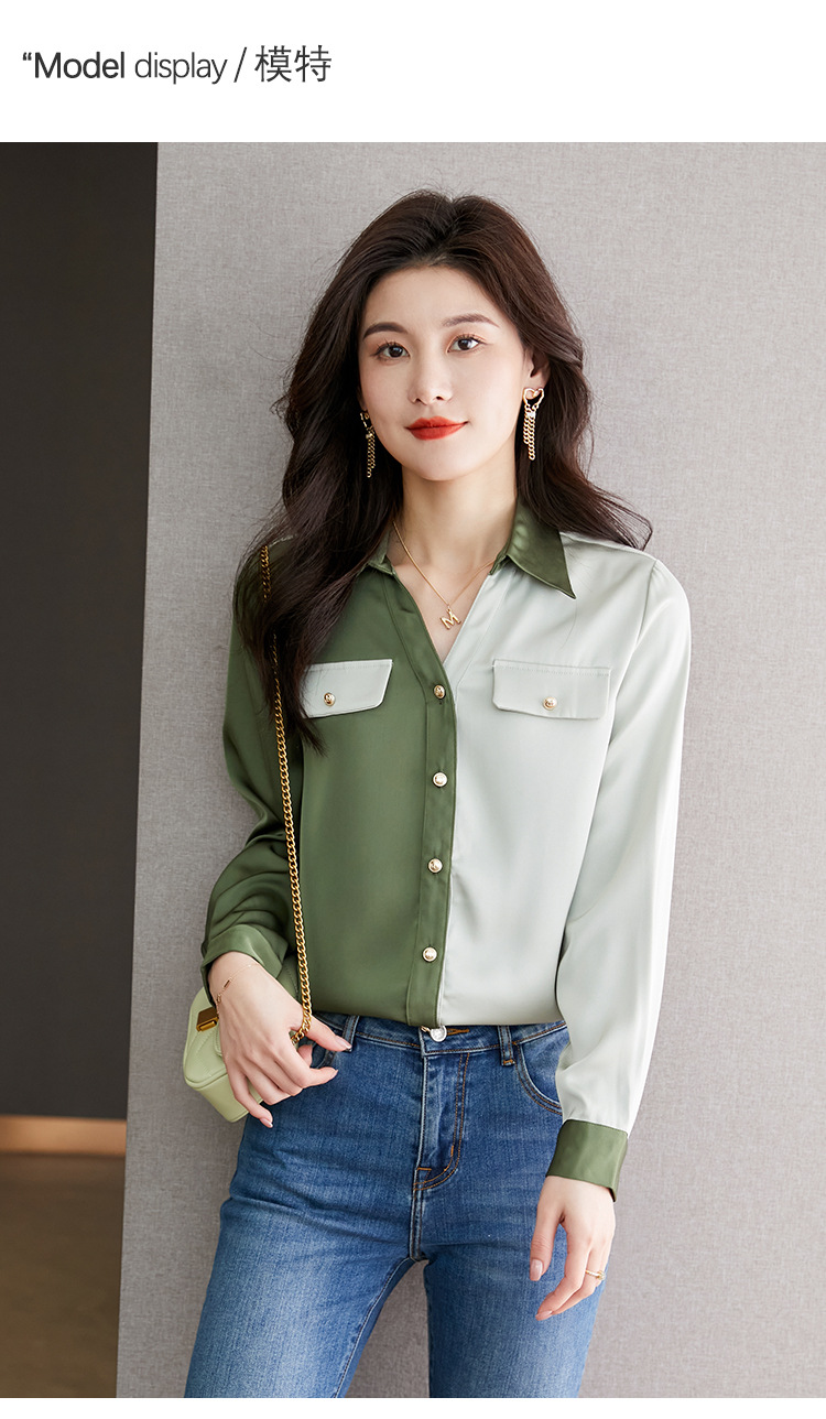 패션 V 넥 셔츠 여성의 2024 봄 새로운 도착 스티칭 홍콩 스타일 레트로 고급 쉬폰 셔츠 작은 셔츠스토어 가기