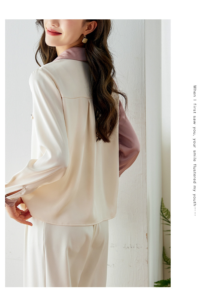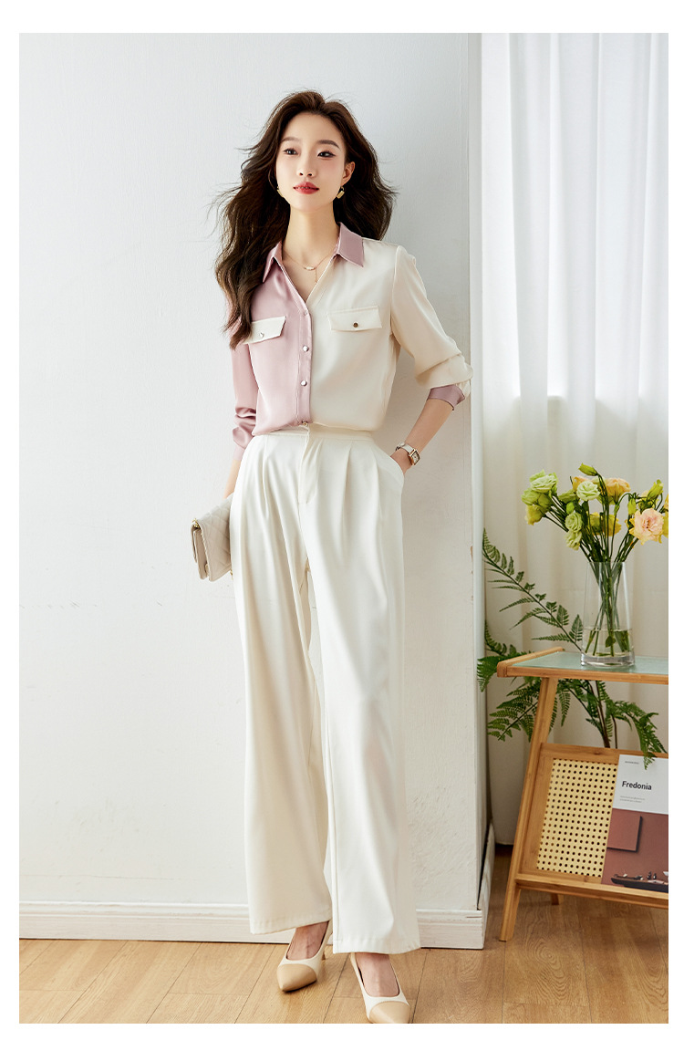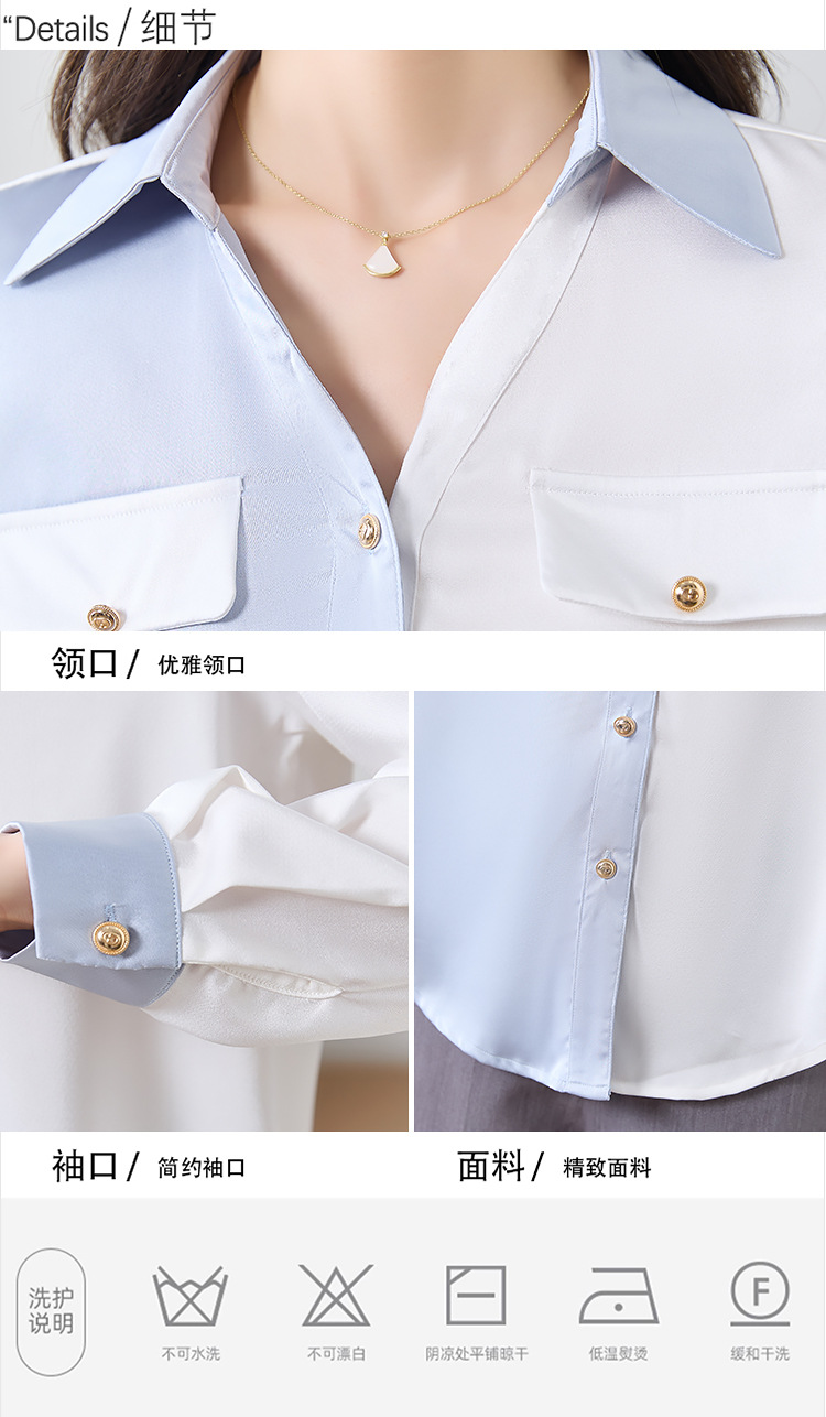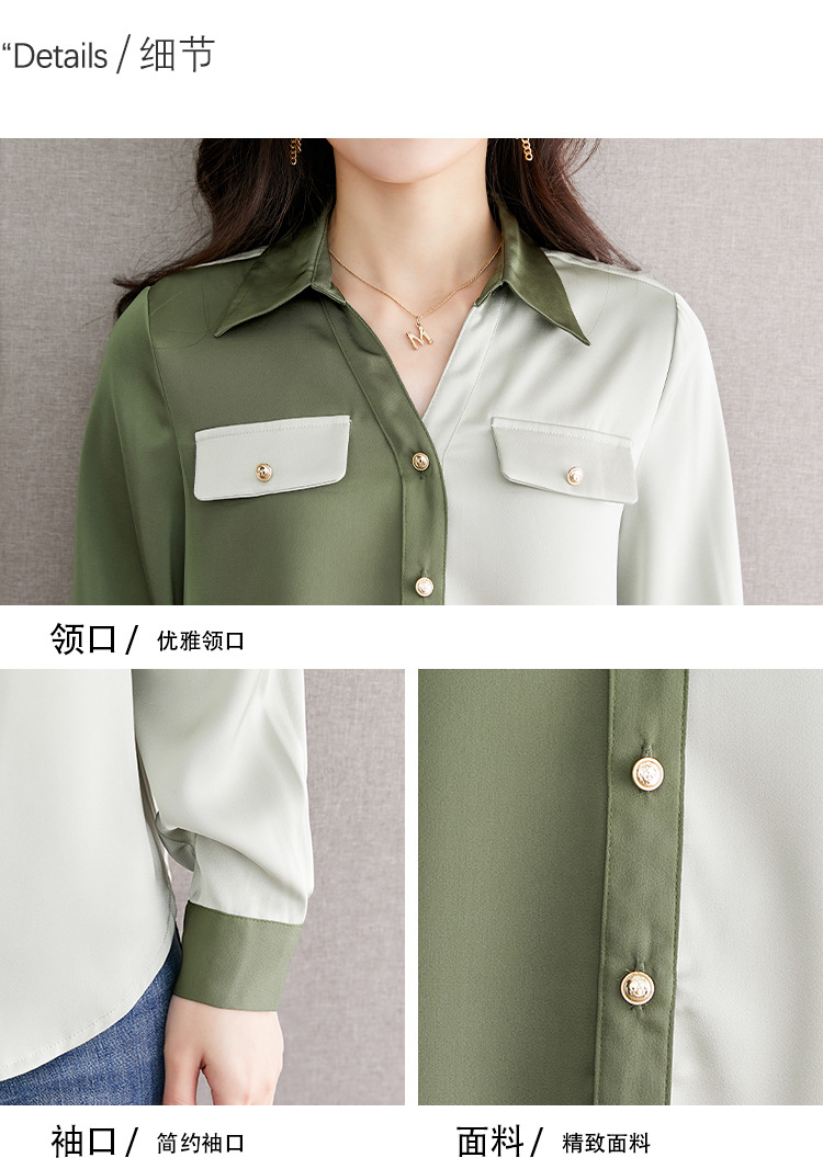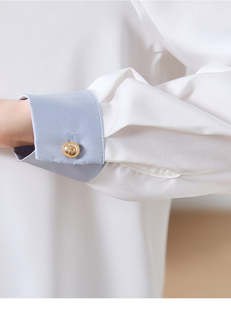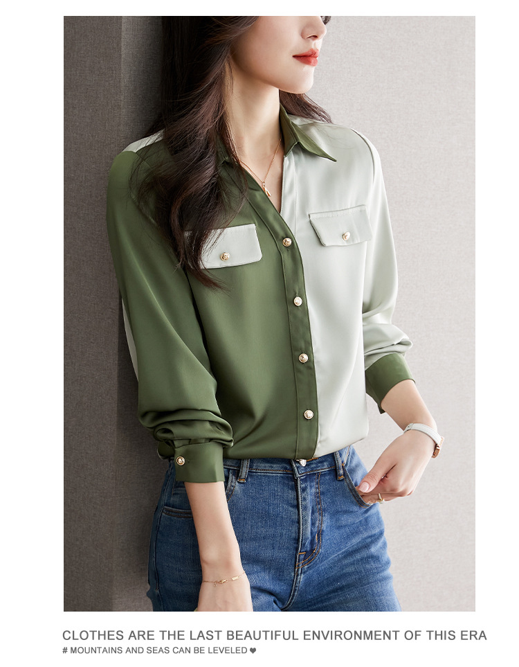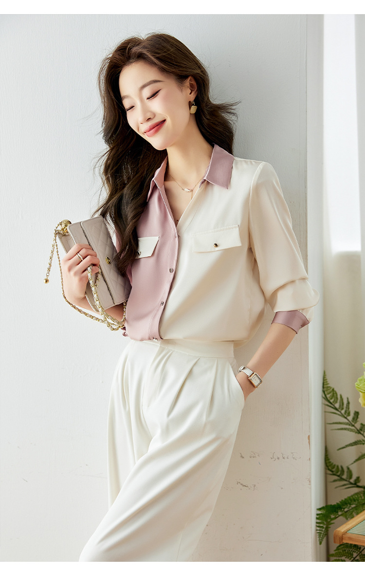 패션 V 넥 셔츠 여성의 2024 봄 새로운 도착 스티칭 홍콩 스타일 레트로 고급 쉬폰 셔츠 작은 셔츠