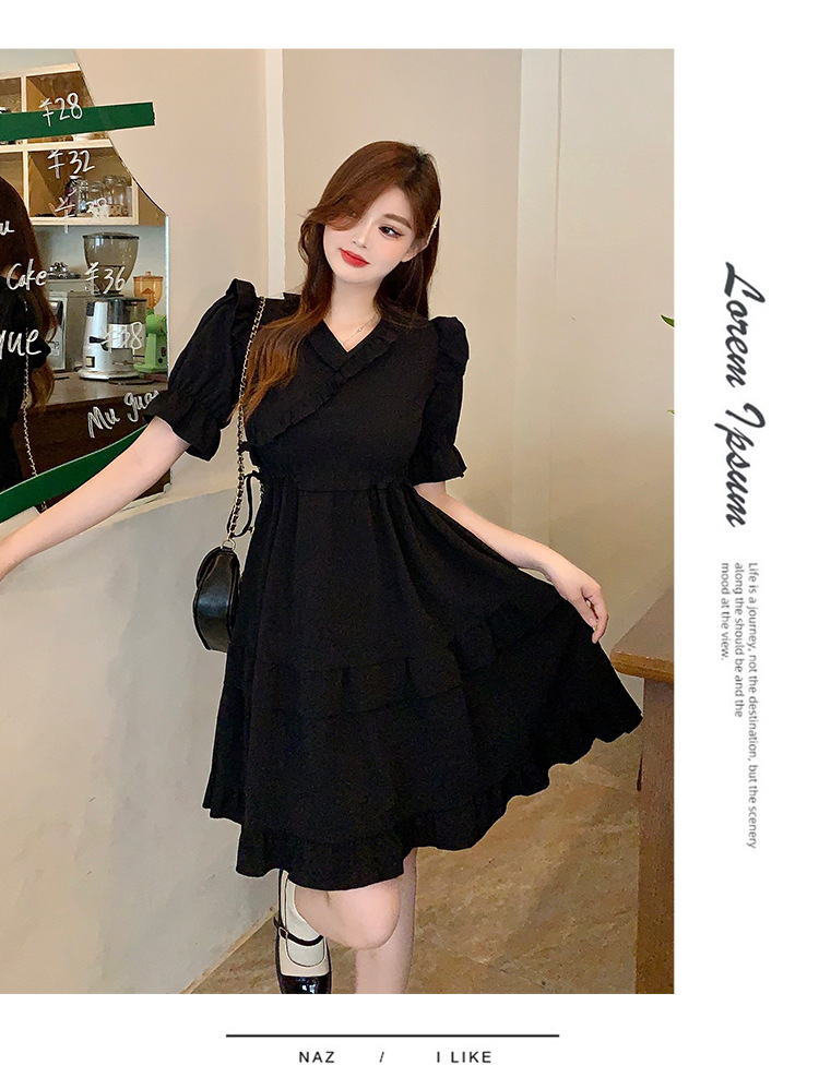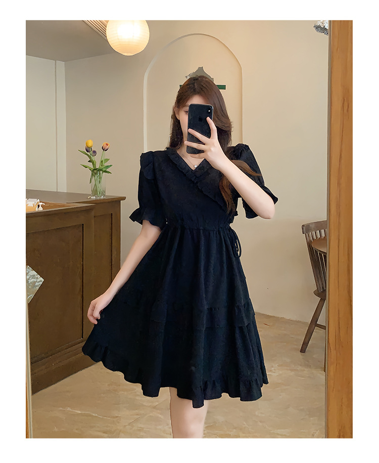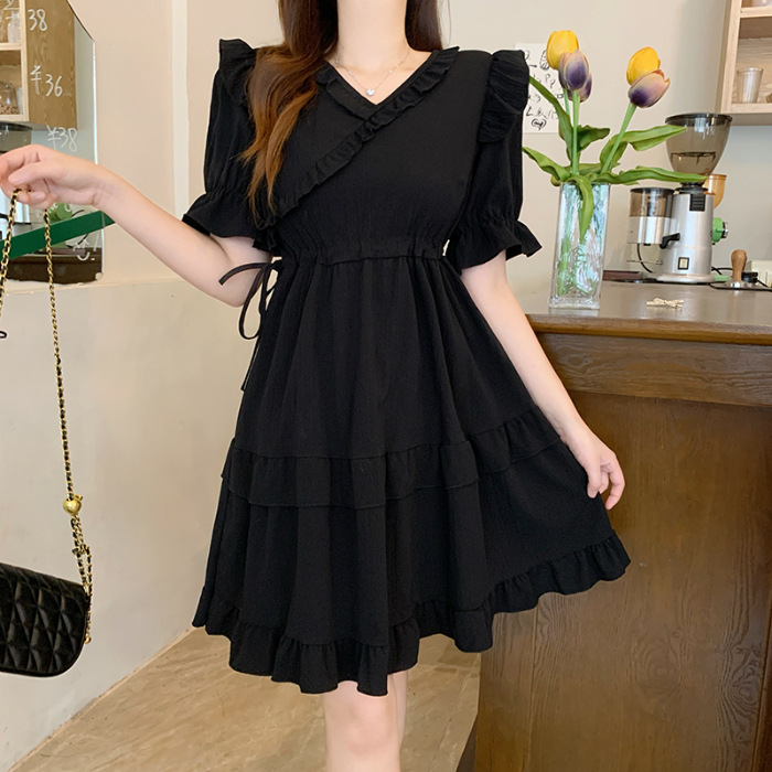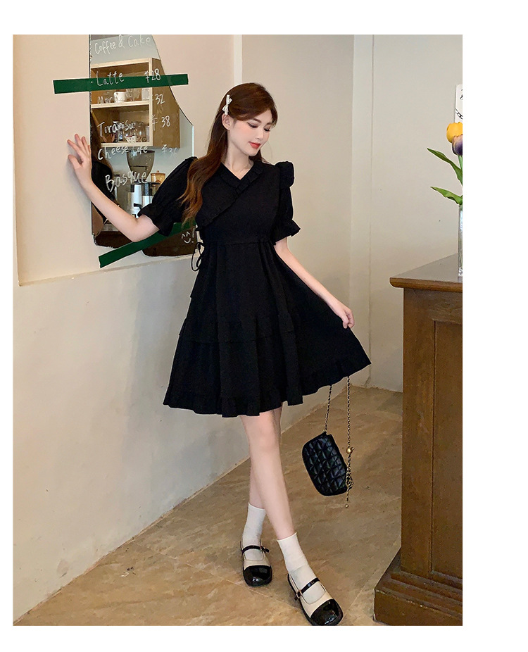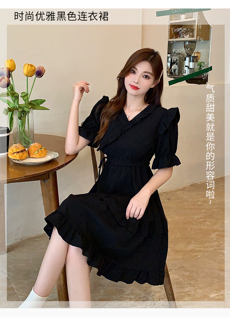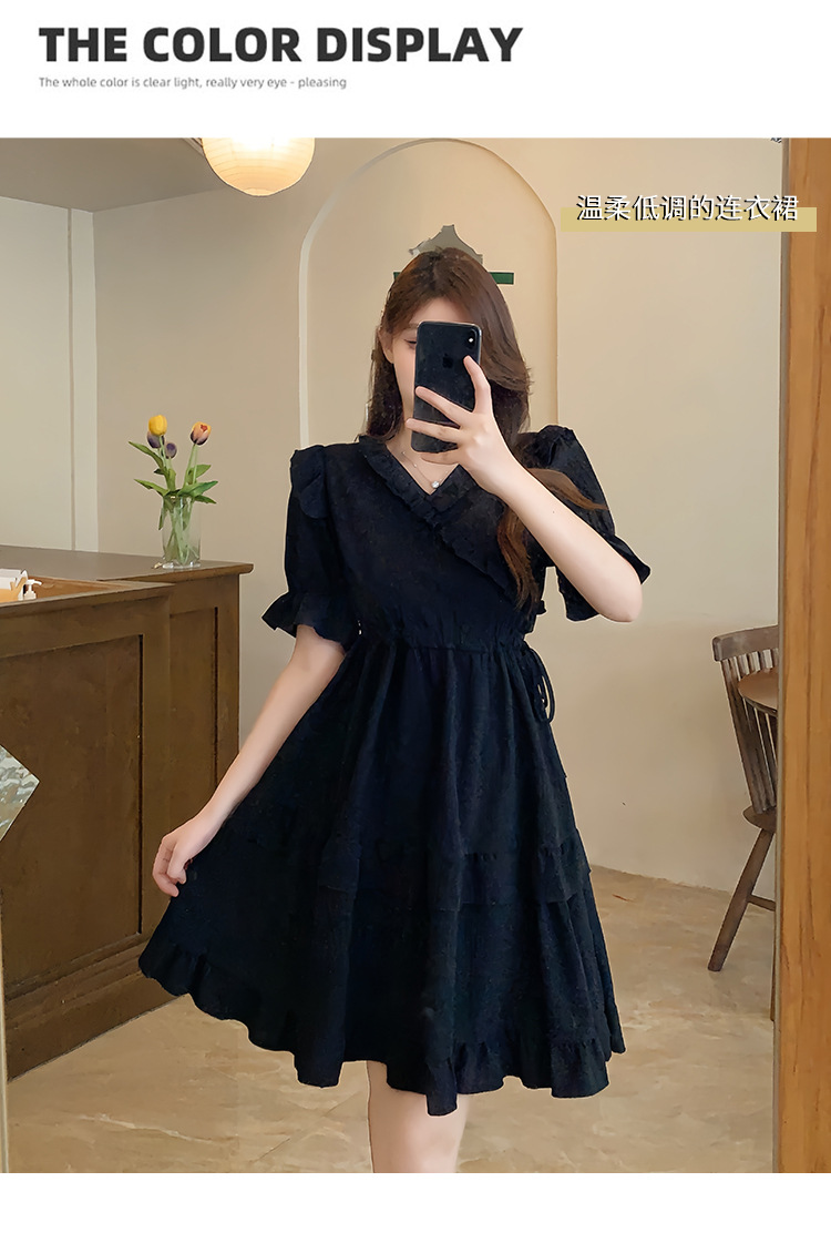 유행 프랑스 V 넥 흑인 여성의 여름 원피스 새로운 디자인 감각 틈새 기질 헵번 스타일 블랙 원피스스토어 가기