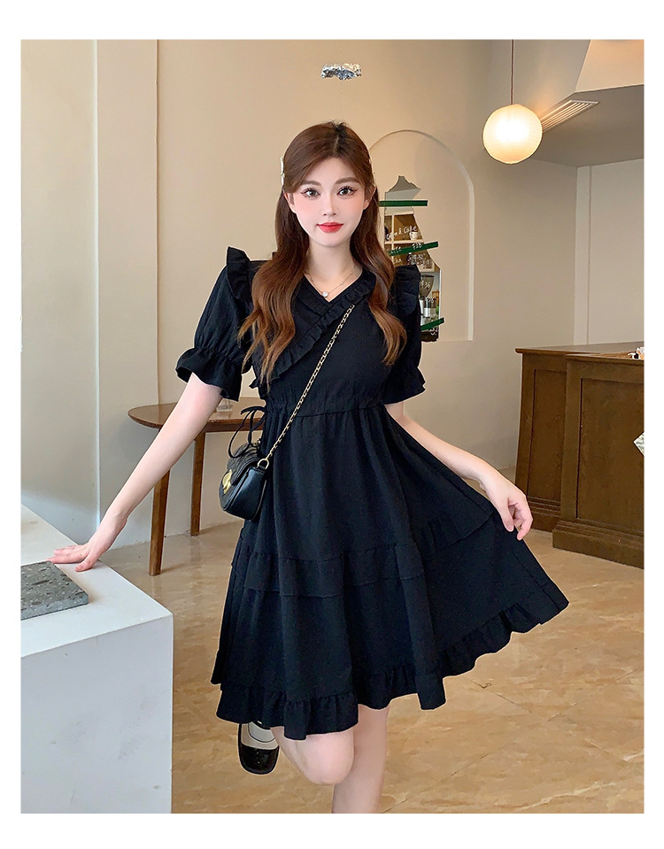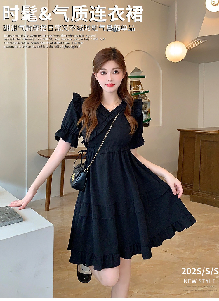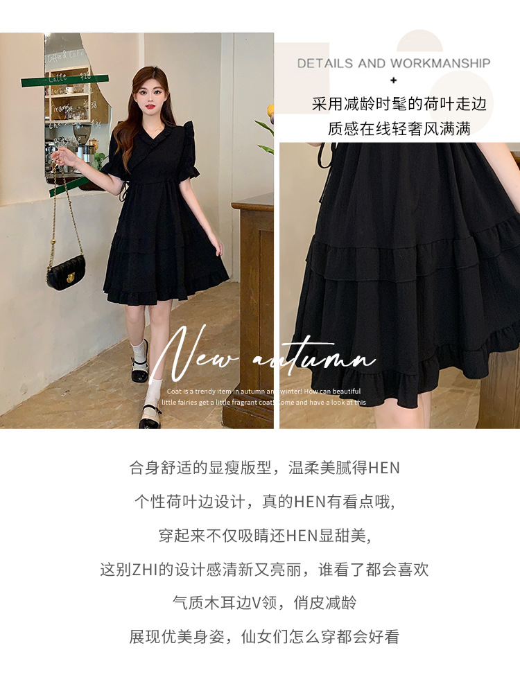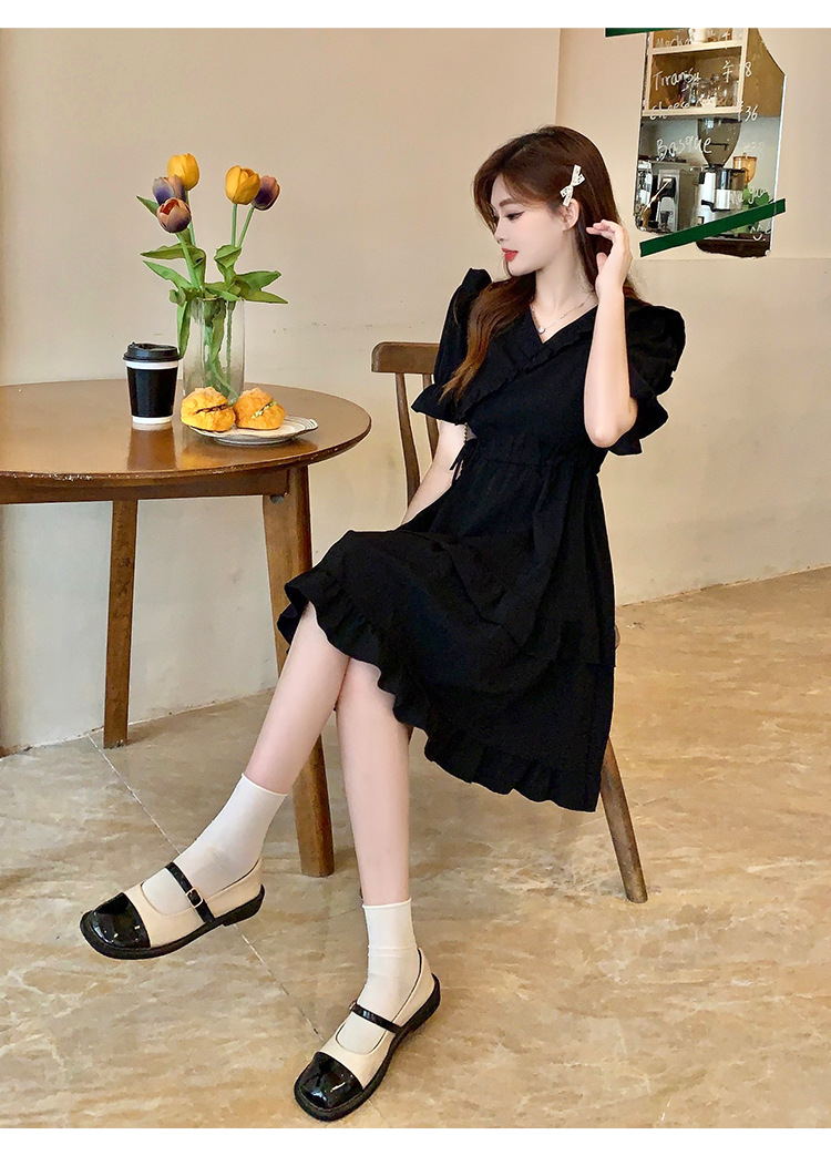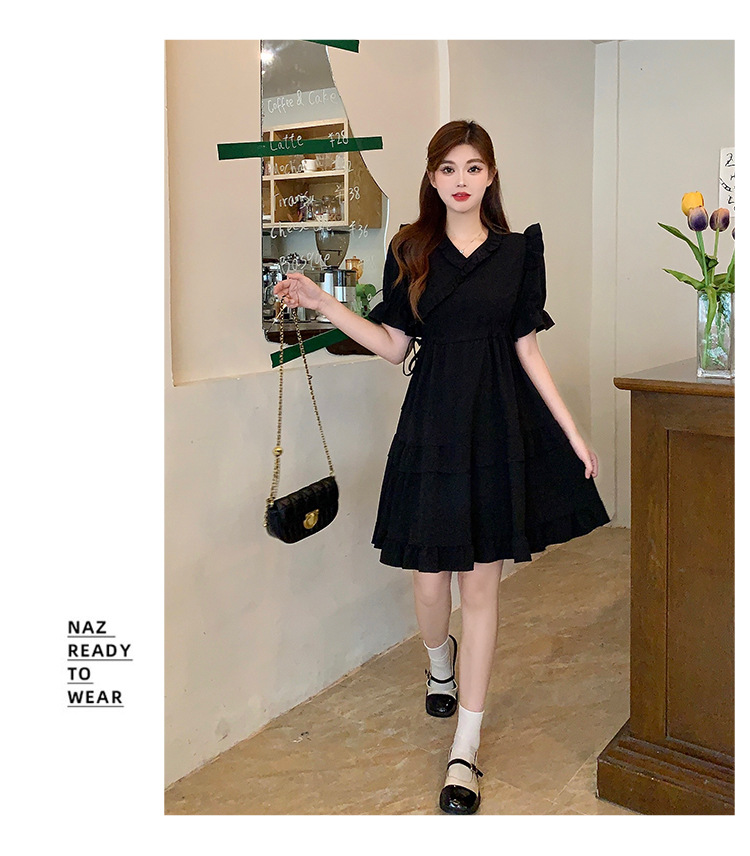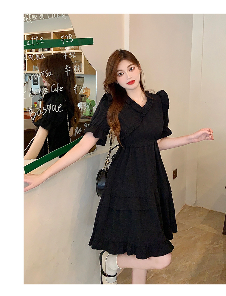유행 프랑스 V 넥 흑인 여성의 여름 원피스 새로운 디자인 감각 틈새 기질 헵번 스타일 블랙 원피스스토어 가기